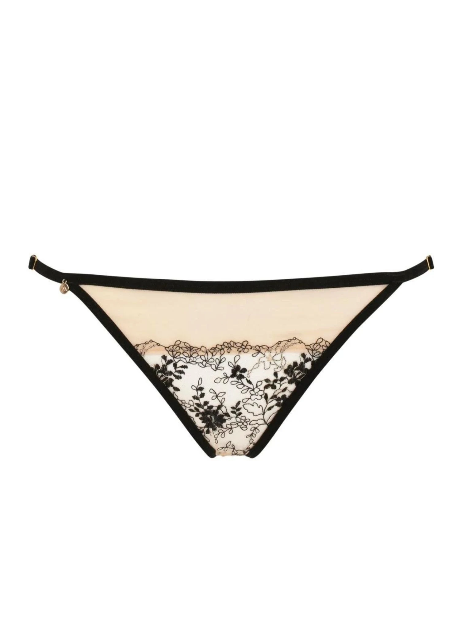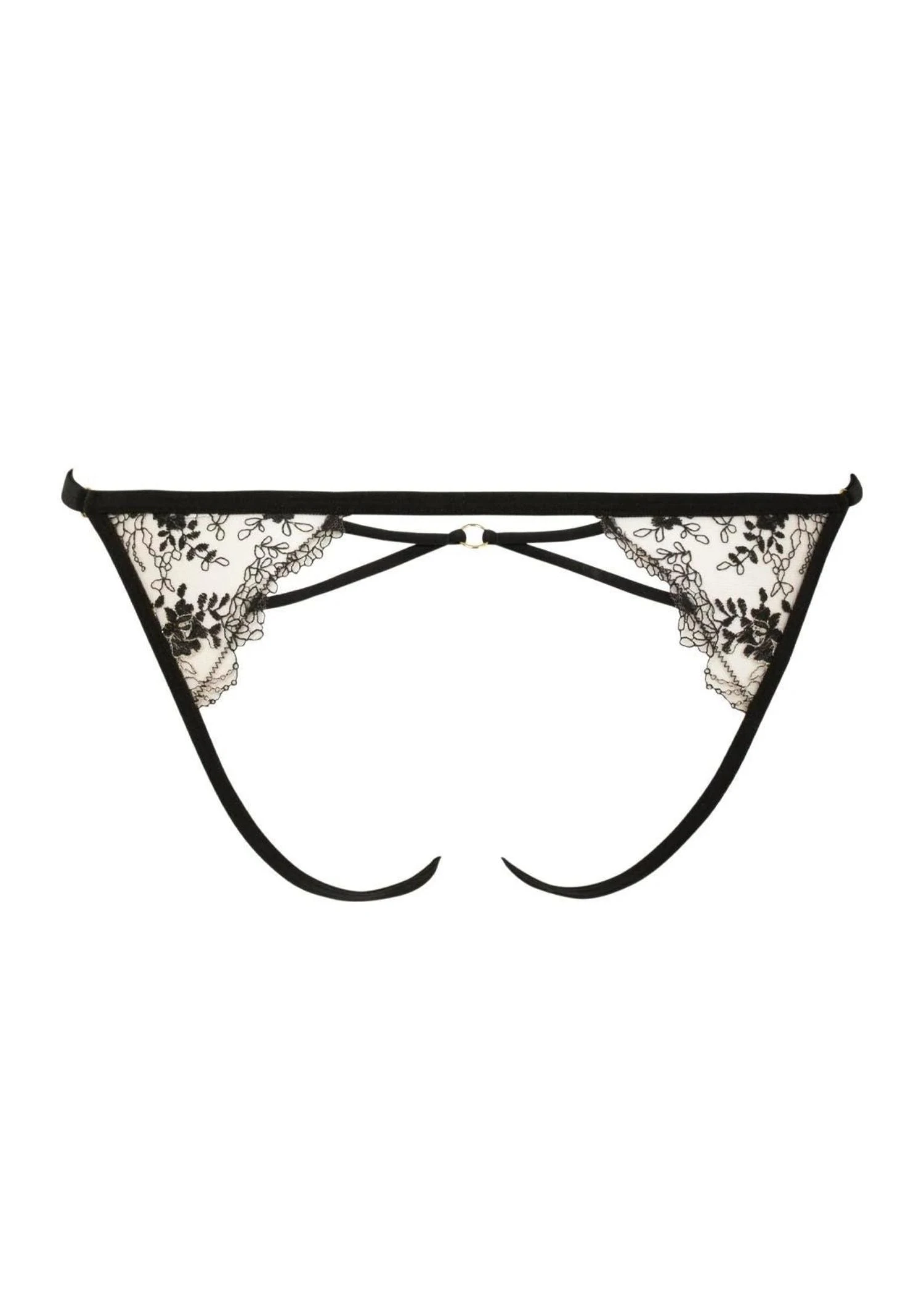 The Apres Minuit Open Brief is a sexy and sophisticated piece. With black floral embroidery on nude mesh for a full transparency look in the front panel, and the back reveals a wide opening for maximum pleasure for the eyes.