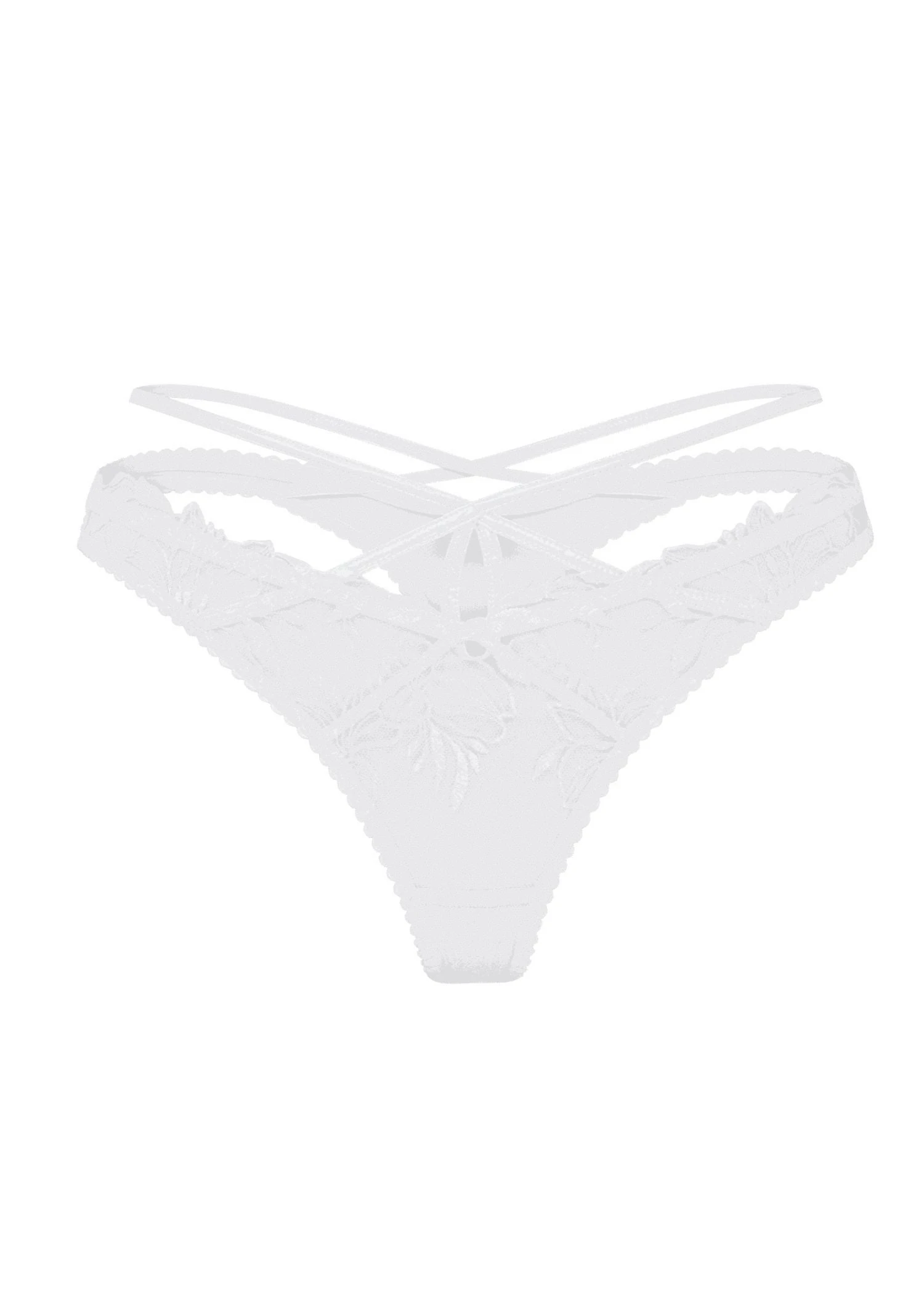 Ozella Thong brings Swiss embroidery to life in a seductive, alluring design. With sheer tulle and a foiled, wet look finish, this thong brief entices with a cutaway effect. PVC bindings complete the lavish look, perfect for a special occasion or a night of passion. Get ready to feel her power!