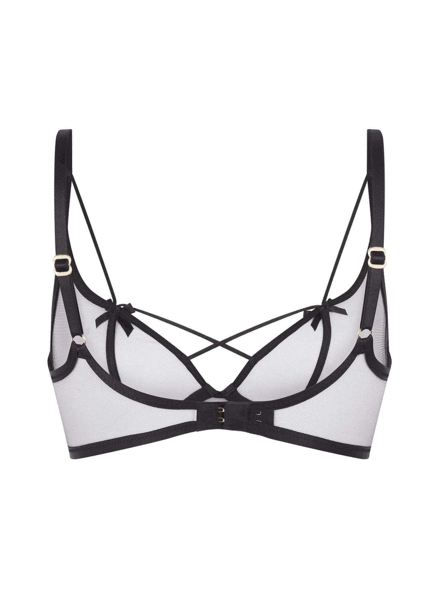 Wearing Zella is a masterclass in sweet seduction. Sheer tulle and bondage-inspired strapping in silky-smooth satin frame your form to devastating effect, whilst the pretty satin bows add a delicate edge. Zella is irresistible, and she knows it.