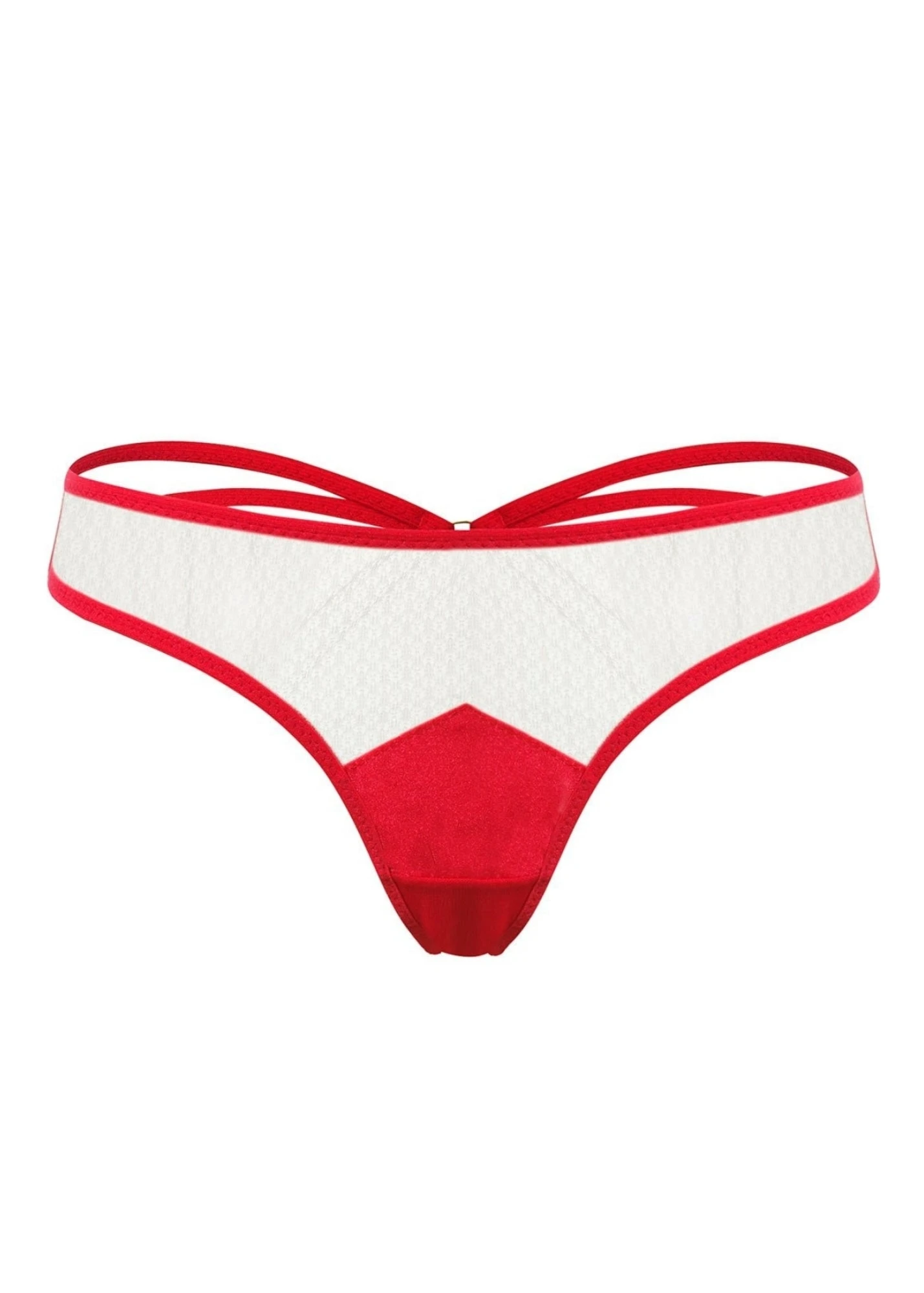 The red piping and ‘barely there’ nude tulle frame your best assets and branch out to create a breathtaking back design.