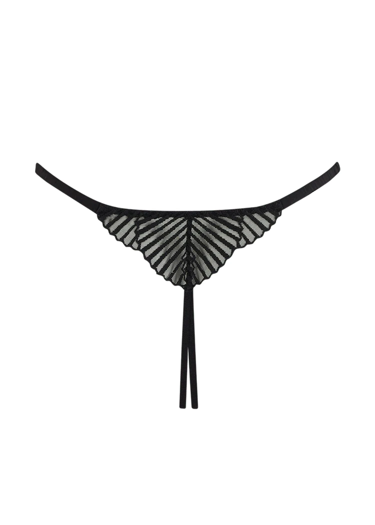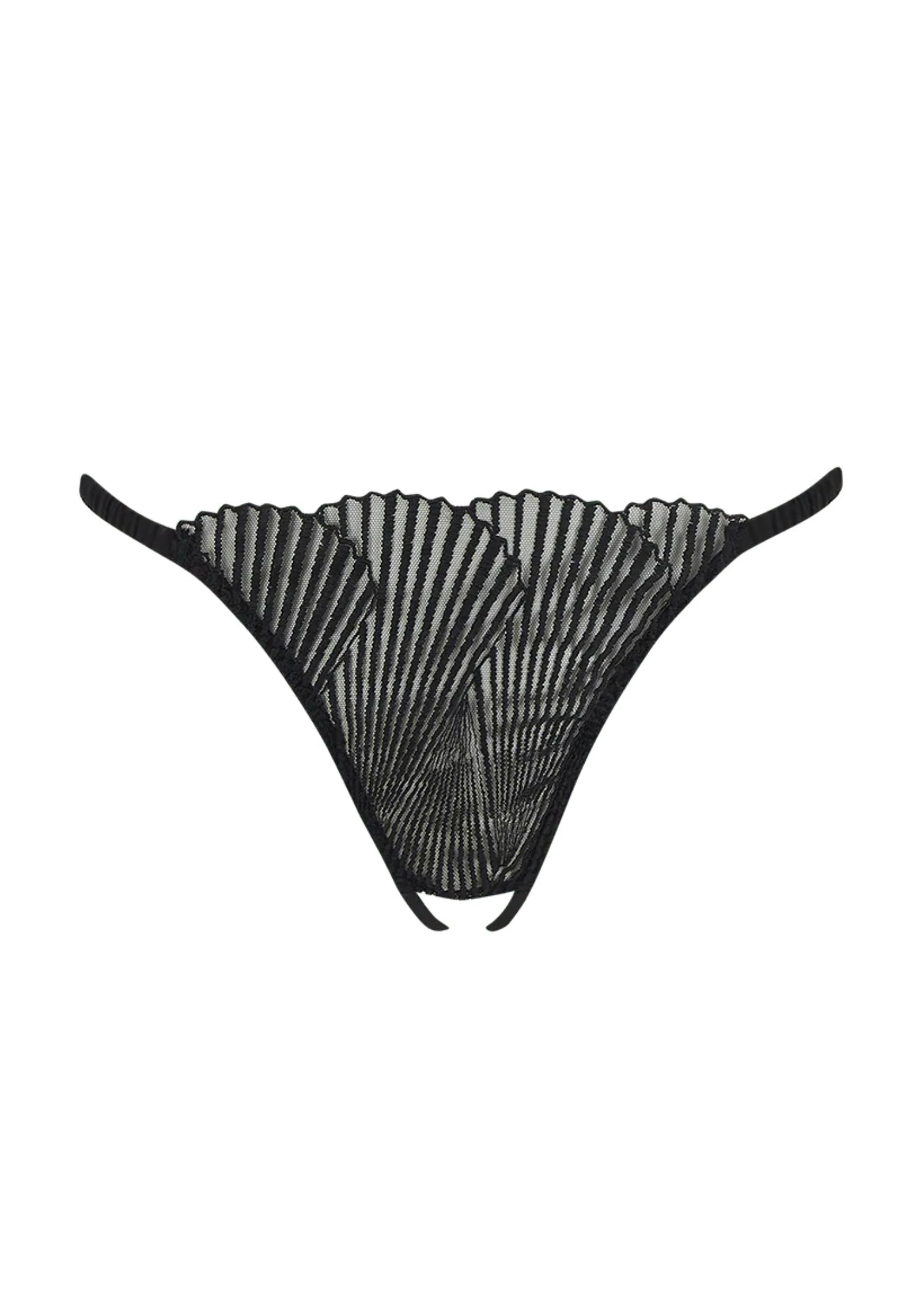 Reveal just enough to leave them wanting more with the Athena Open Thong. Delicate tulle and black silk frame your most intimate areas, creating a tantalizingly sensual aesthetic. Elevate the moment with the matching Quarter Cup Bra and experience unforgettable erotic appeal. Dare to show your daring side!