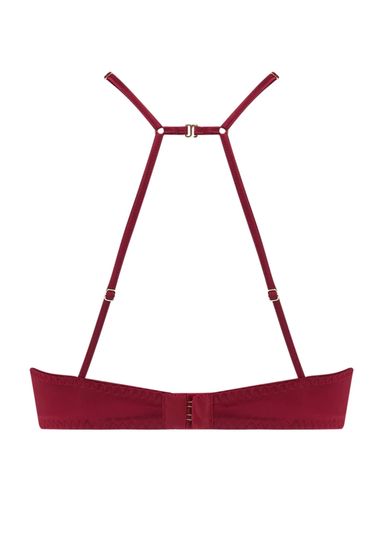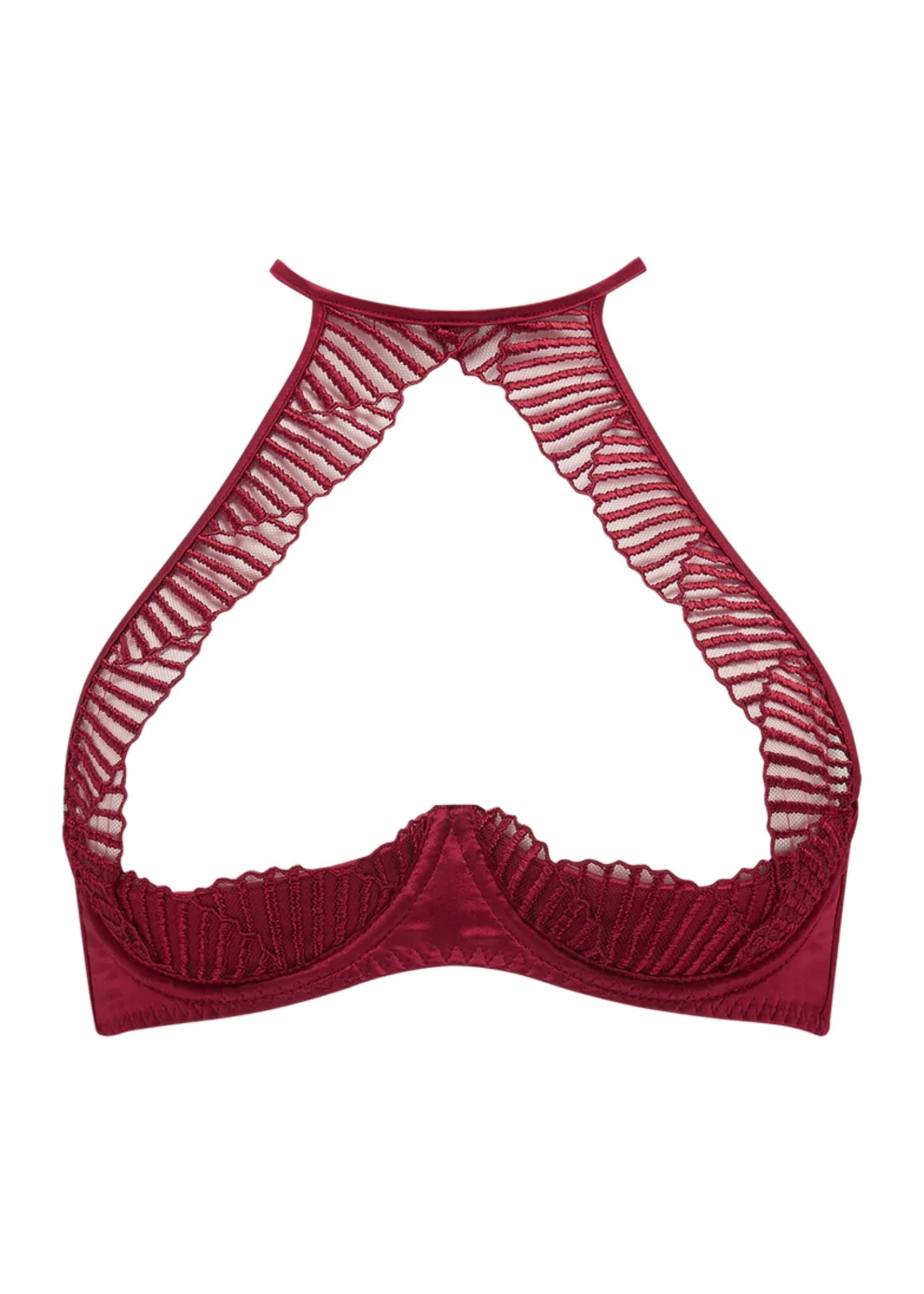 The Athena Red Quarter Cup Bra is one of the most daring and sophisticated designs. Featuring delicate silk bound straps, this halter cup bra creates an alluring silhouette sure to turn heads.