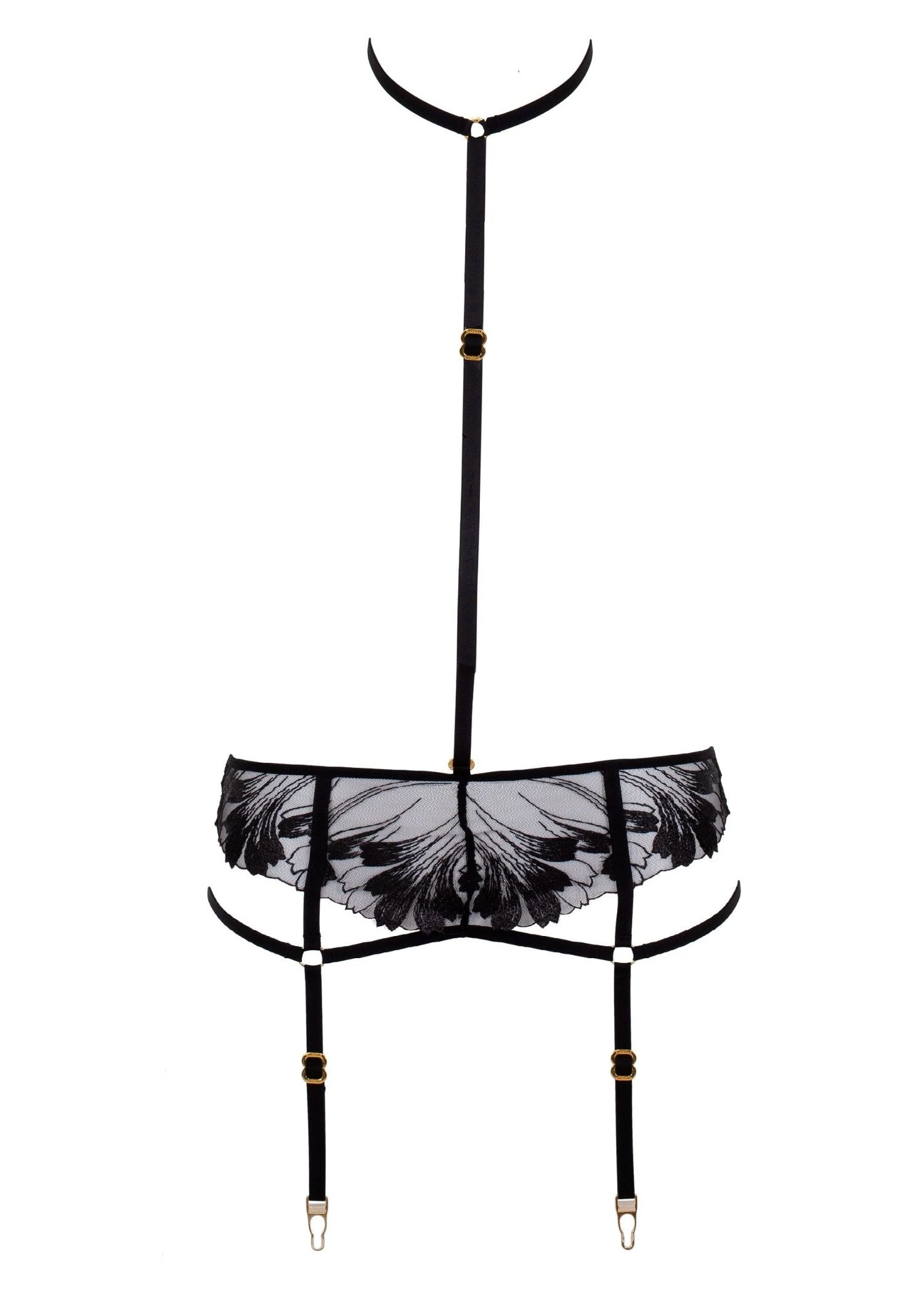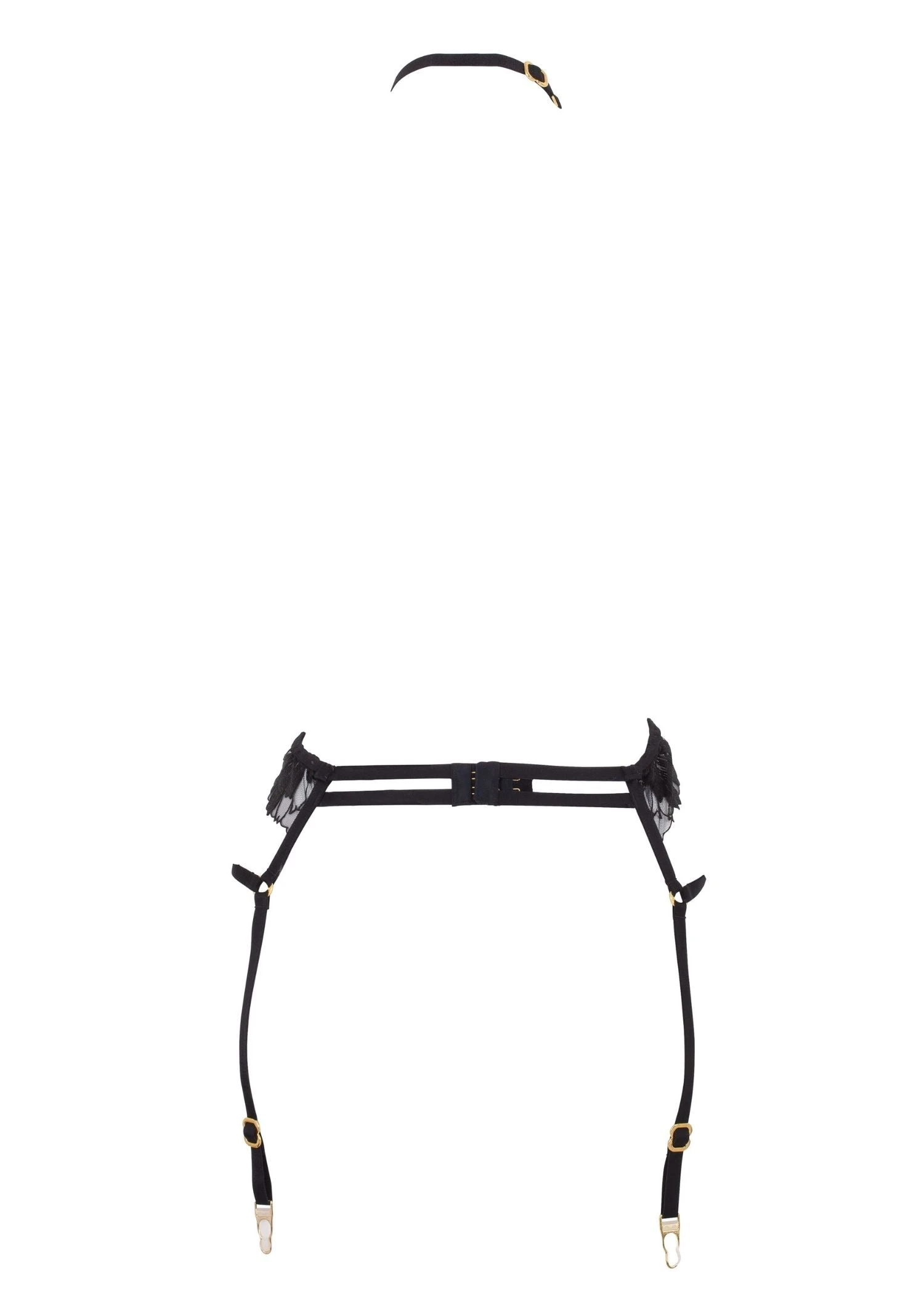 Discover endless possibilities with the Colette Suspender Harness, with its minimalistic slimline banding and embroidered mesh waistband that sculpts your silhouette. Pair with the Colette bra and thong for the complete look.