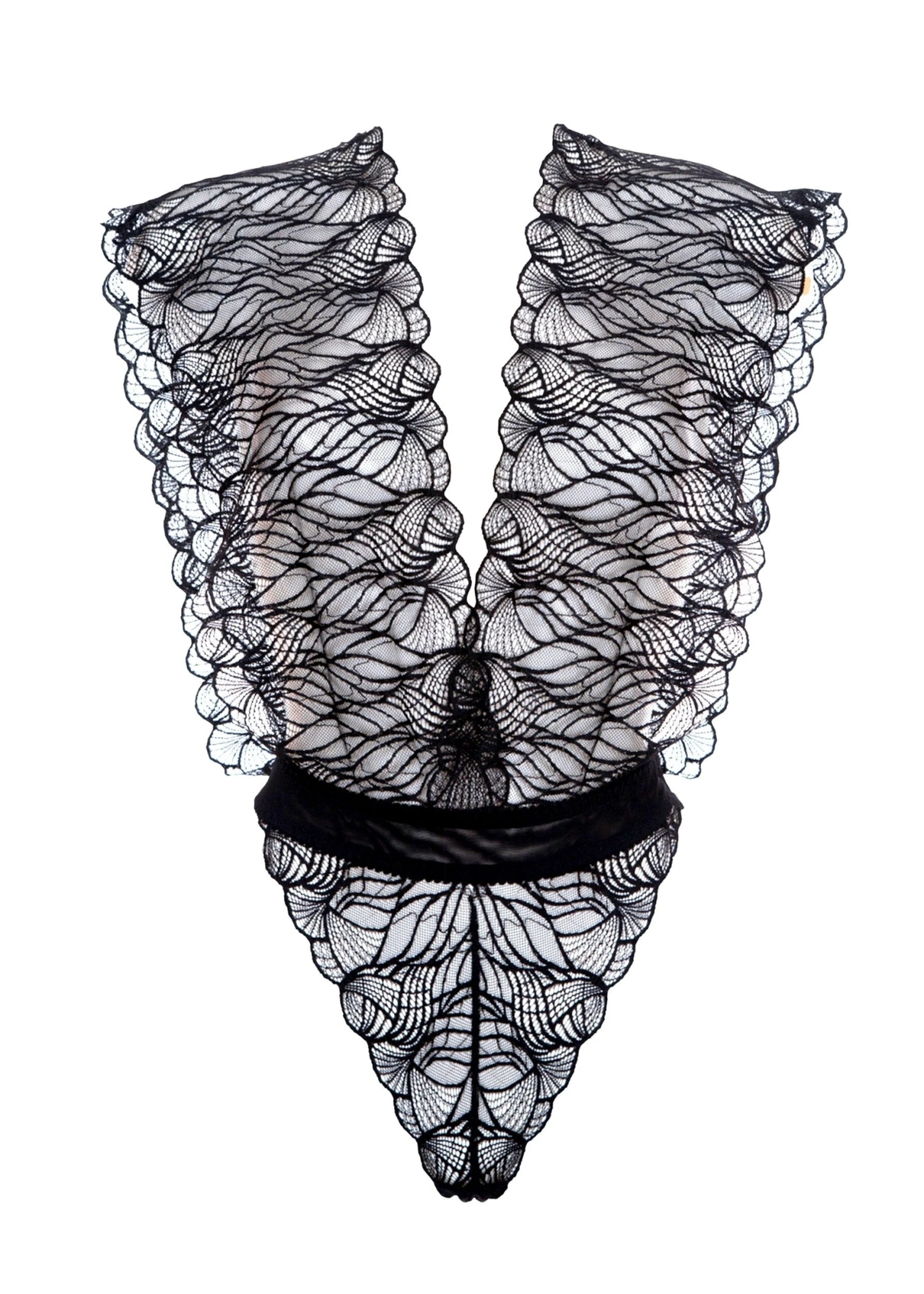 Seductive and Dramatic, the Emerson Lace Body features wide lace panels and a plunging V-neckline at the front and back. Ideal under your favourite outerwear or as lingerie.