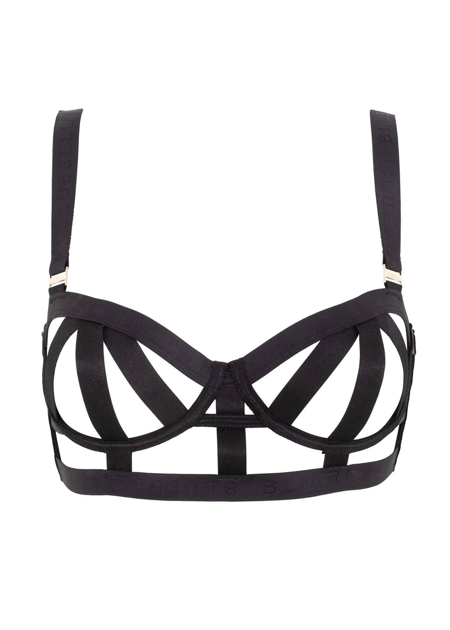 Make a statement with Highgate, a must-have piece of contemporary lingerie. Bold directional straps are placed on open cups for a provocative cage-like look, paired with gold-tone hardware and triple backstrap design for extra support.