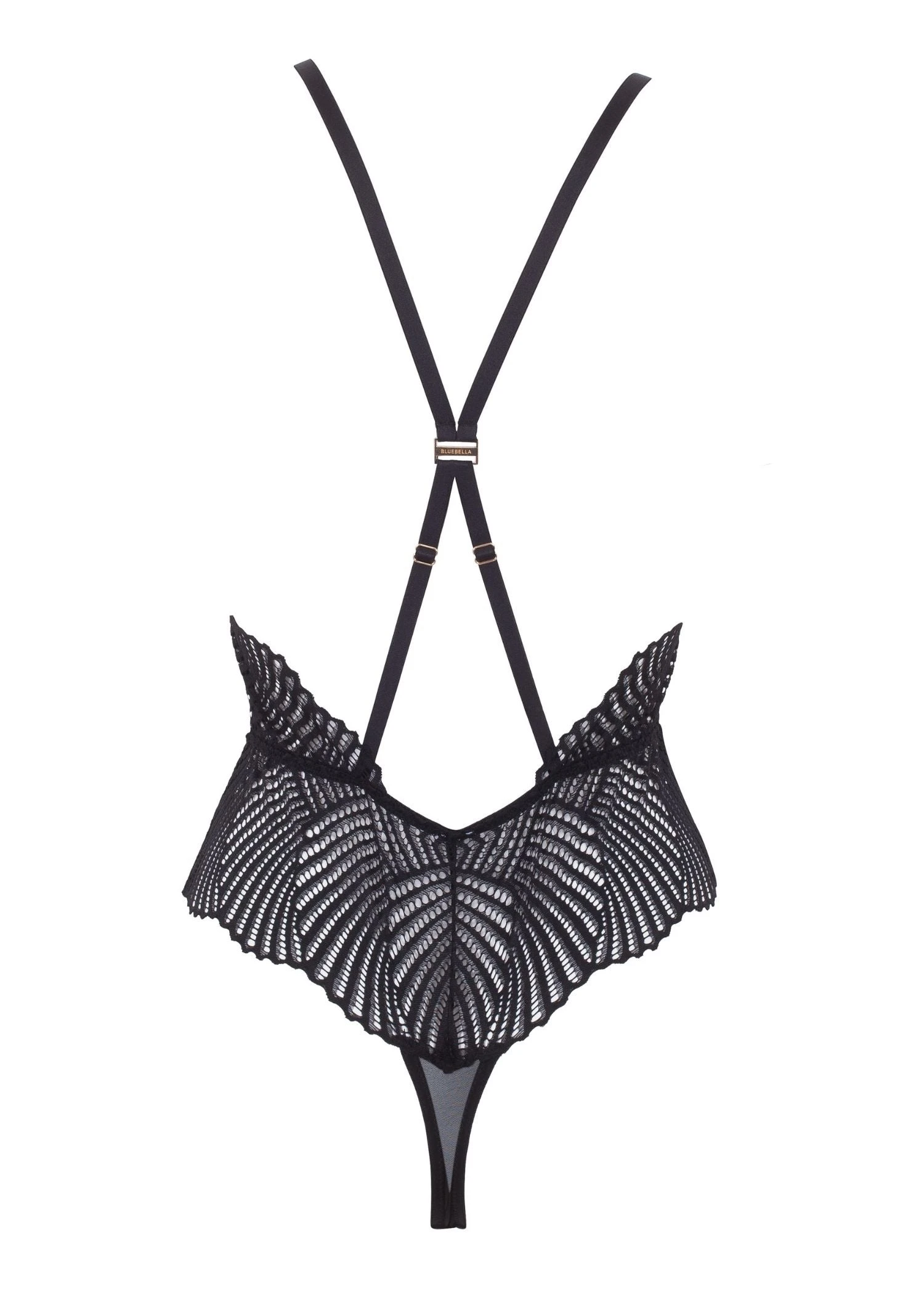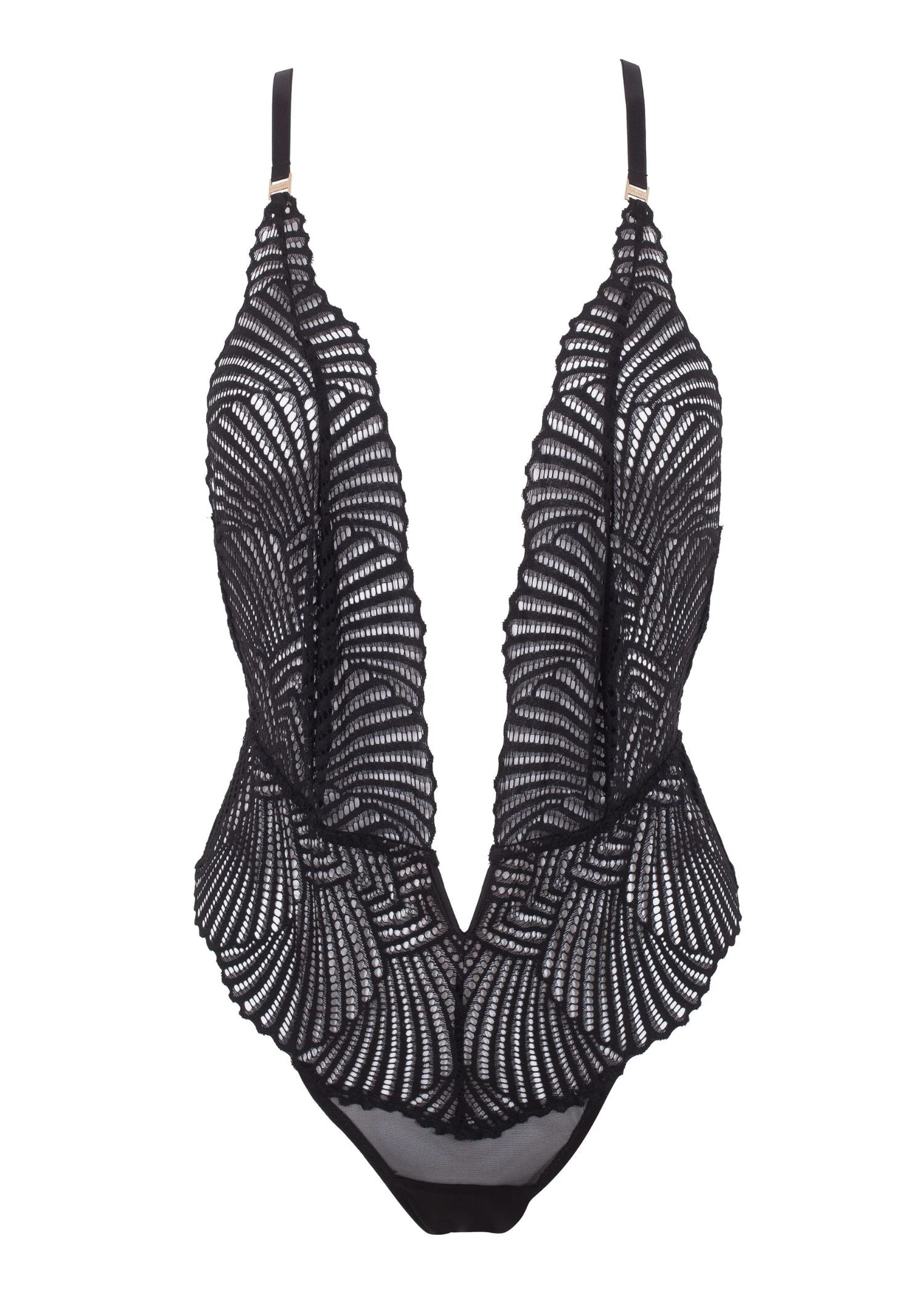 Soft, sensual, and sophisticated, the Iris Soft Body is designed for comfort with adjustable straps and a comfortable black lace body. The gold-tone hardware and Art Deco inspired pattern makes this body piece irresistibly alluring.