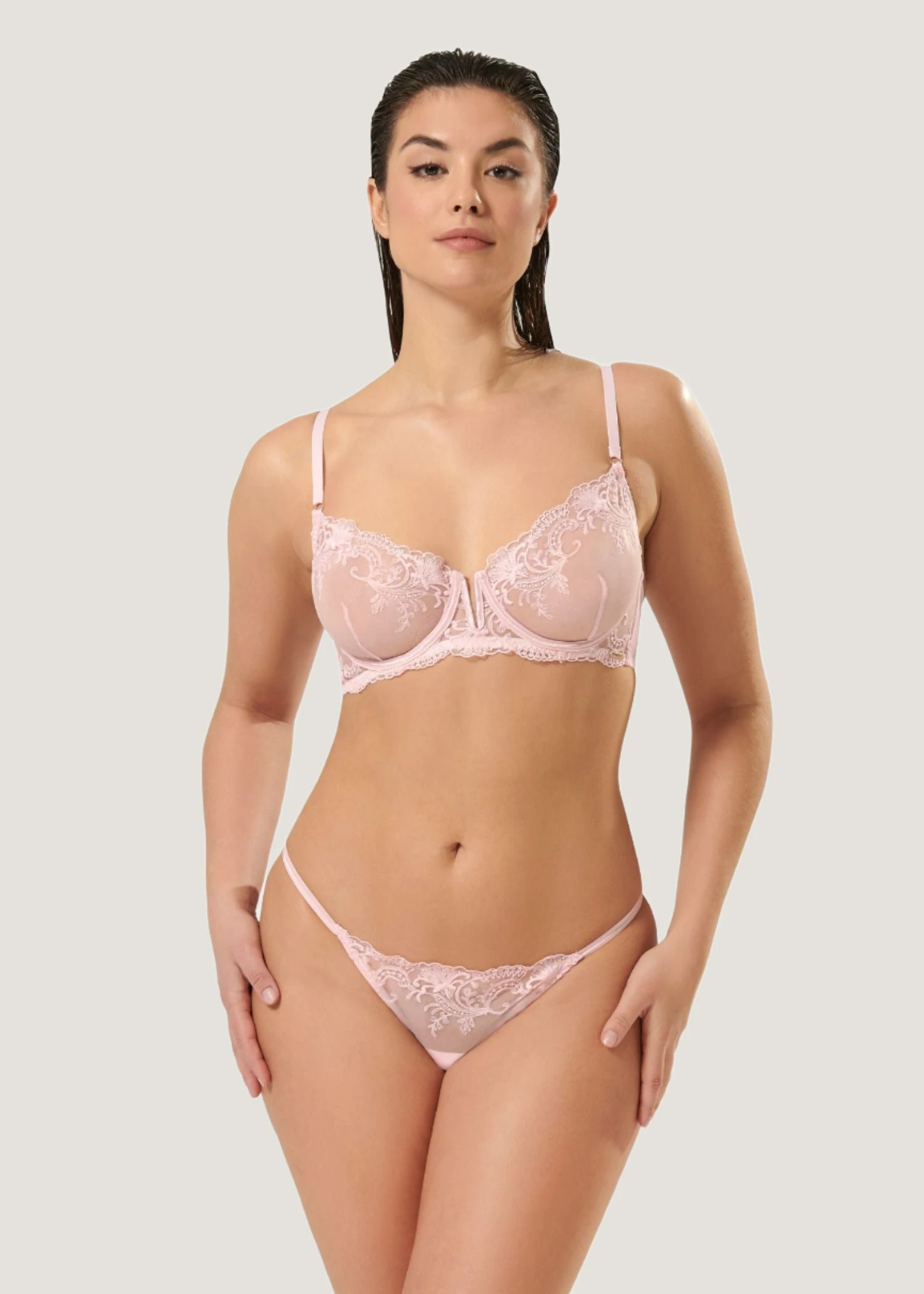 Offering a masterclass in intricate embroidery, it’s easy to see what makes the Marseille bra the absolute bestseller. This classic piece achieves a distinctively alluring look thanks to its perfectly executed mixture of conceal-and-reveal elements, while the gorgeous hue ensures that it appeals to those not afraid to experiment with their lingerie choices. Style with other Marseille designs for a look that spells out confidence from afar.