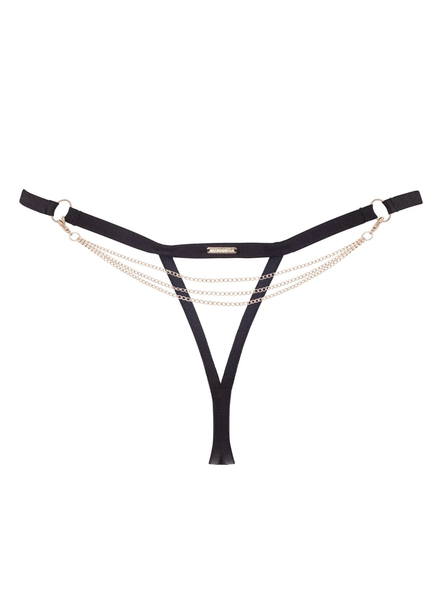 A minimal yet striking statement piece. The Oriana Thong features an open front panel with detachable gold-tone chains against chic slimline strapping. Wear with the Oriana Open Bra for a striking look.