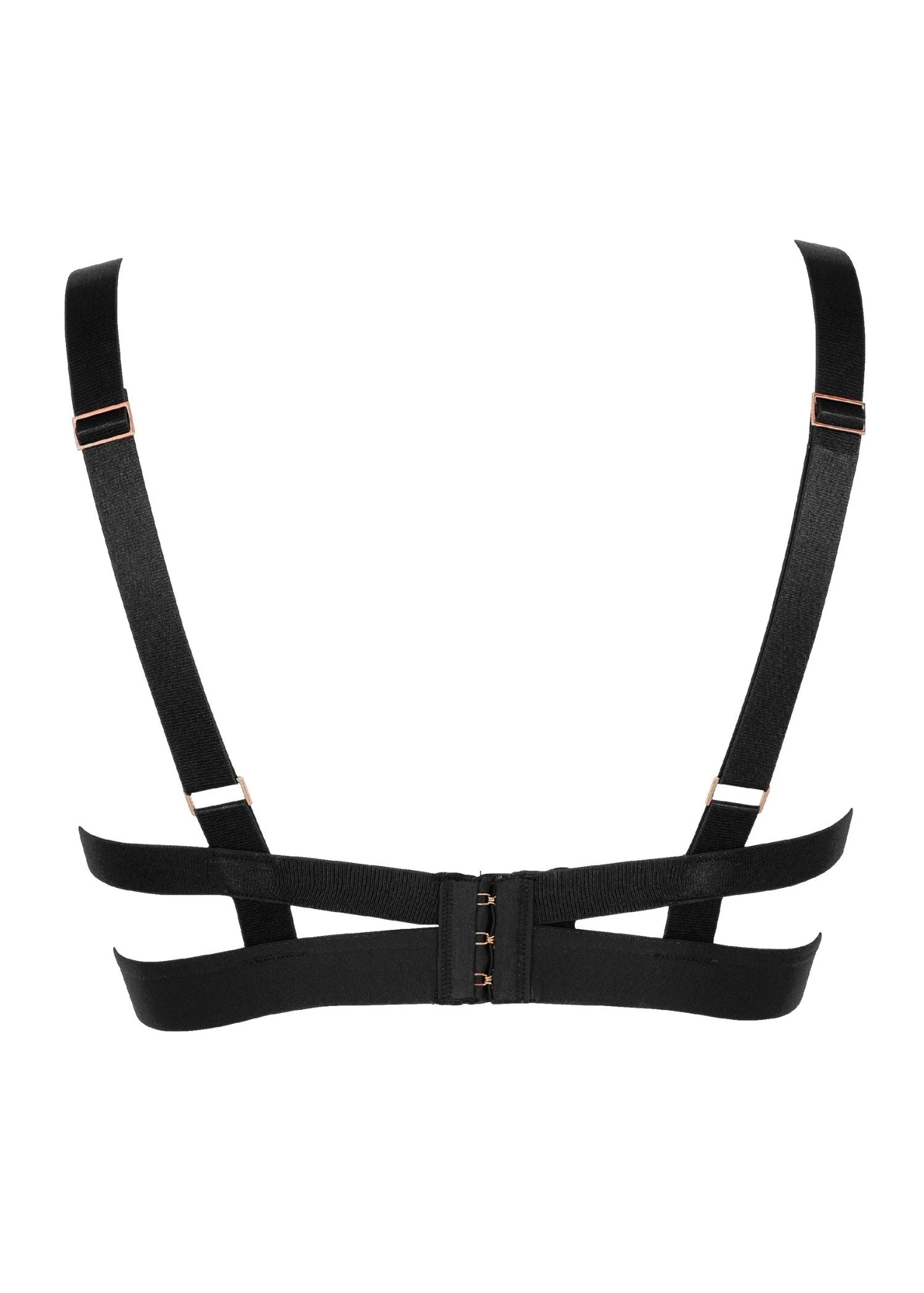 The Sofia creates a striking look using tantalizing cire embroidery cups with a shine finish. Paired with a gold-tone hardware centerpiece. Wear with the Sofia Brief for the completed look.