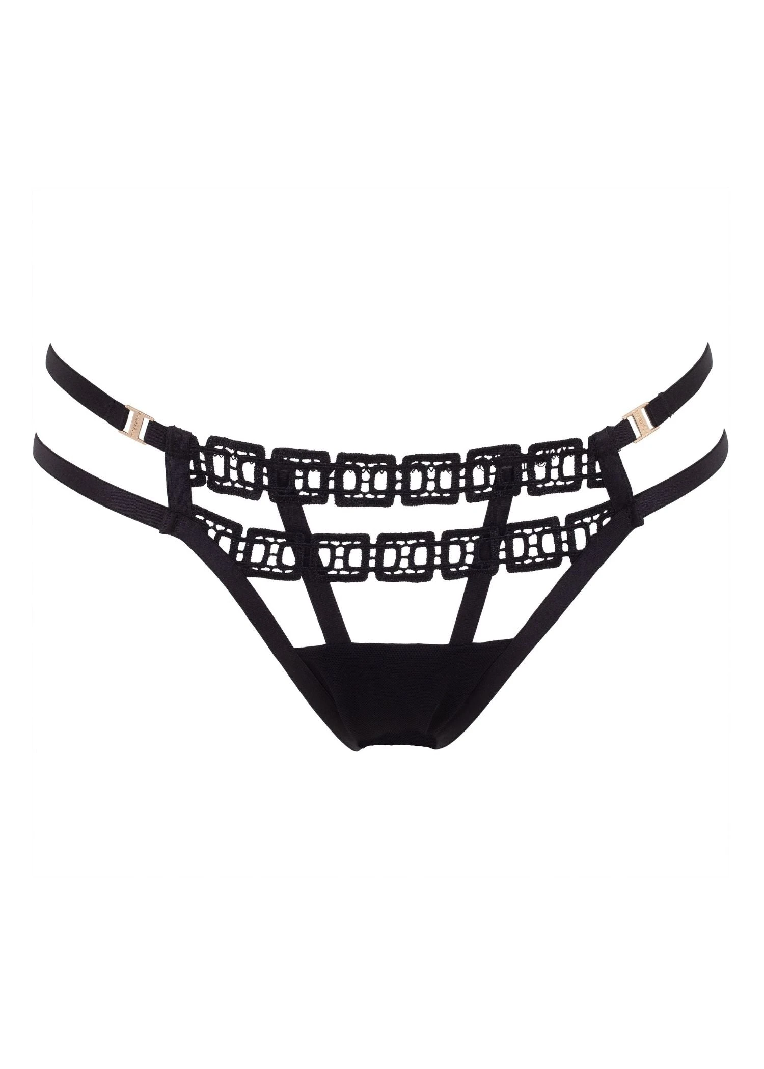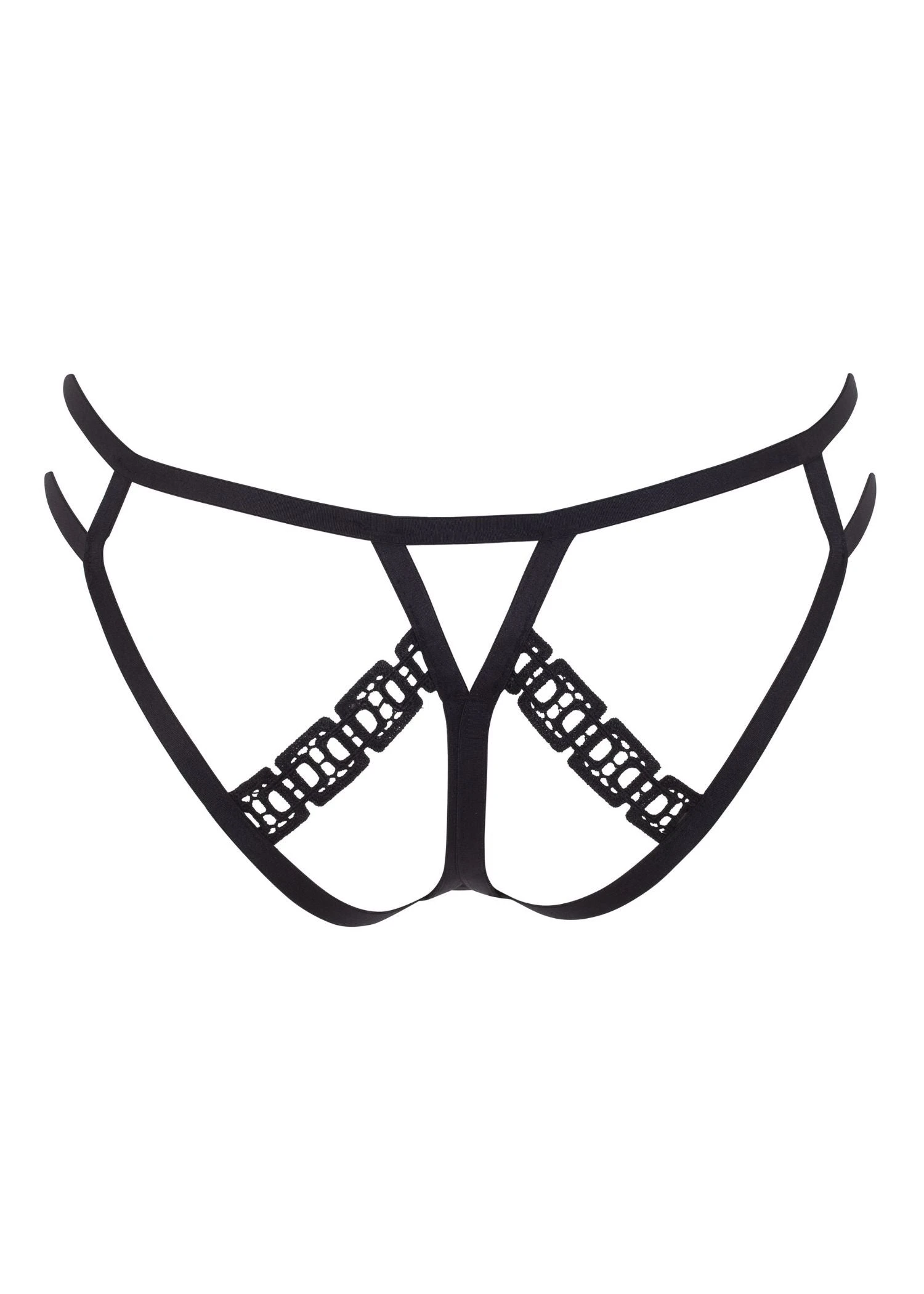 The Sylvie Open-Back Brief is a seductive, provocative piece that oozes charisma. The ouvert back style with crochet-like embroidery that decorates the cut-out front panel also features gold-tone hardware for a classy and feminine look.