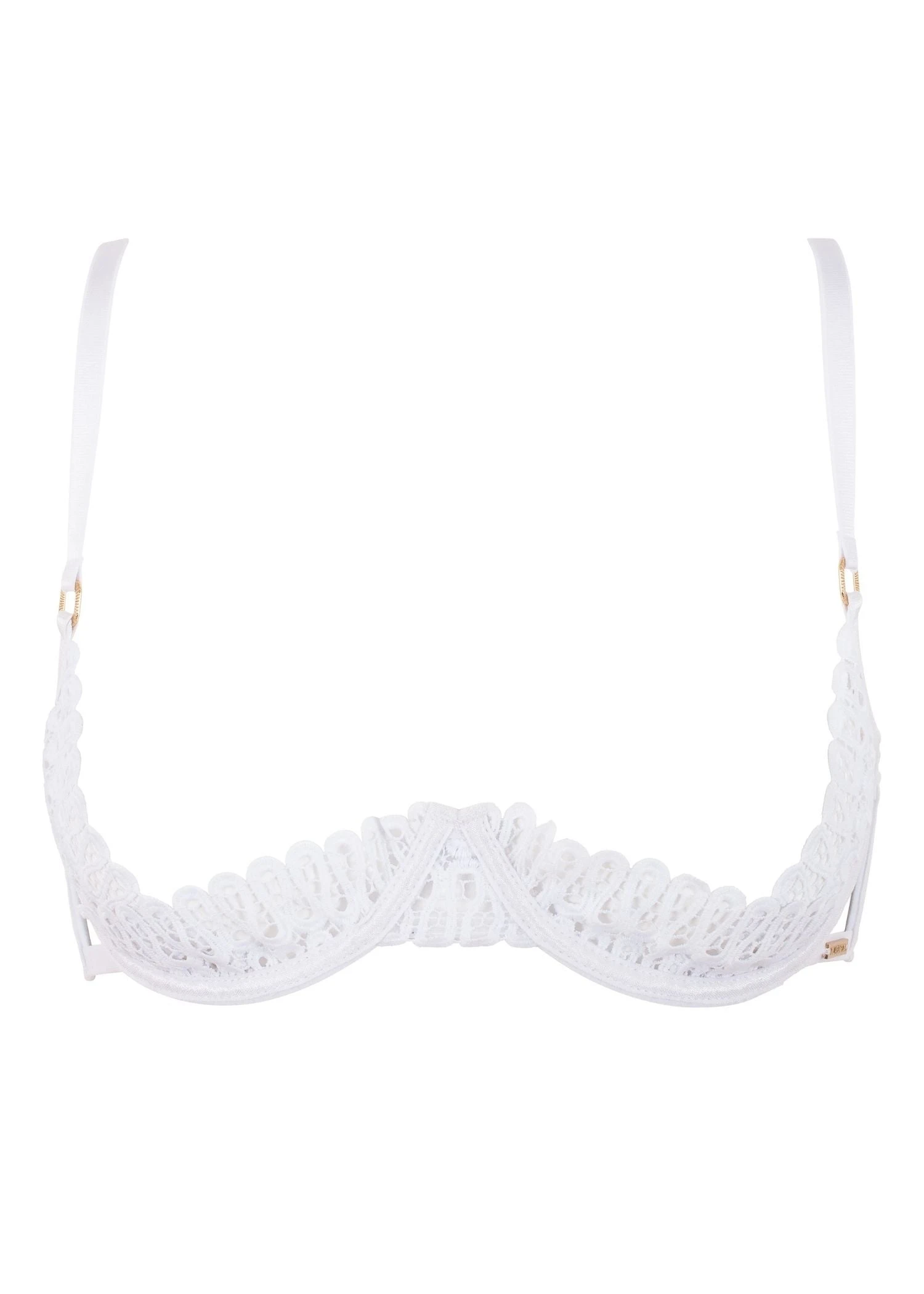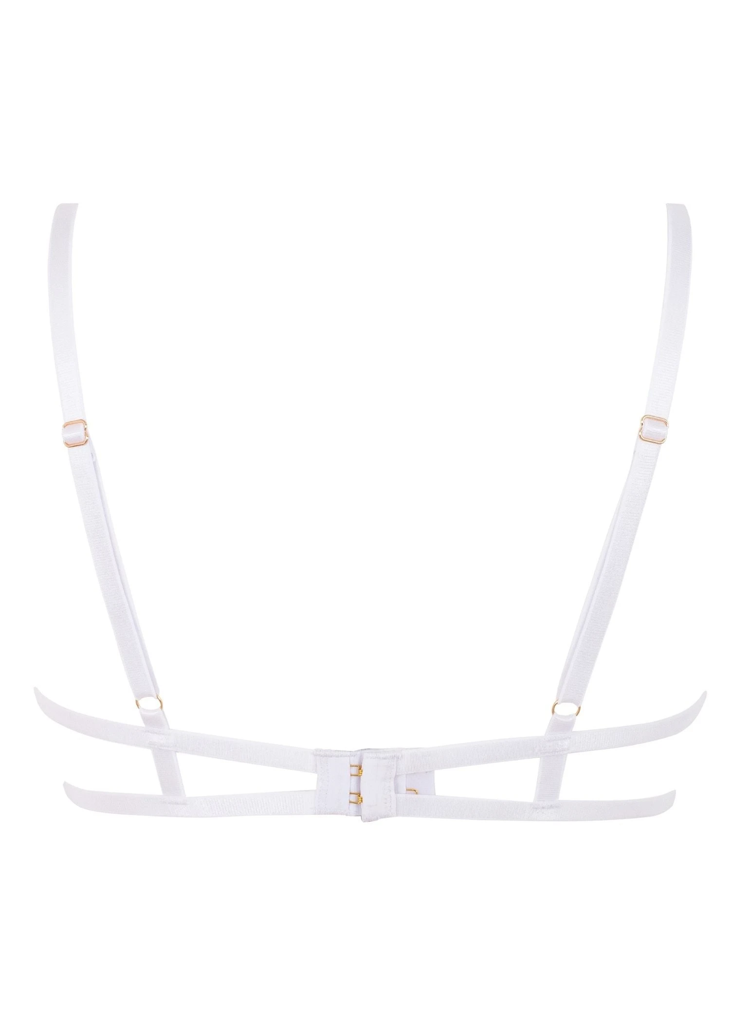 Forget what you know about bras. The Tallulah Open Bra is a bra that does not try to hide anything. Made from luxurious materials and with an alluring construction and deductive design, the Tallulah Open Bra is unforgettable. The sophisticated crochet-like embroidery on the cups accentuates your figure while providing underwired support.