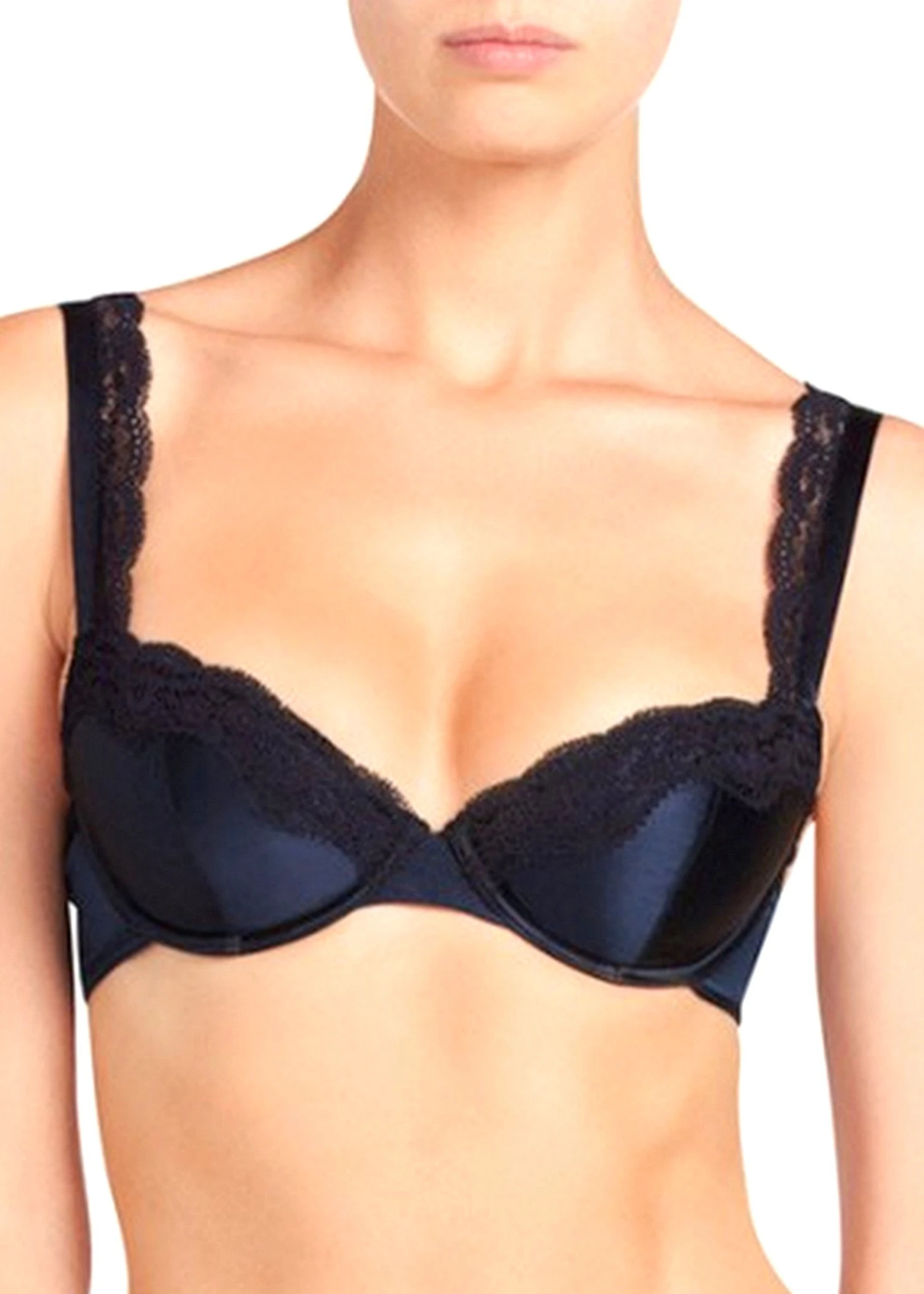 Treat yourself to a dreamy whisper of lace and silk with this luxuriously smooth balconnet bra with scalloped straps that were designed to be seen.