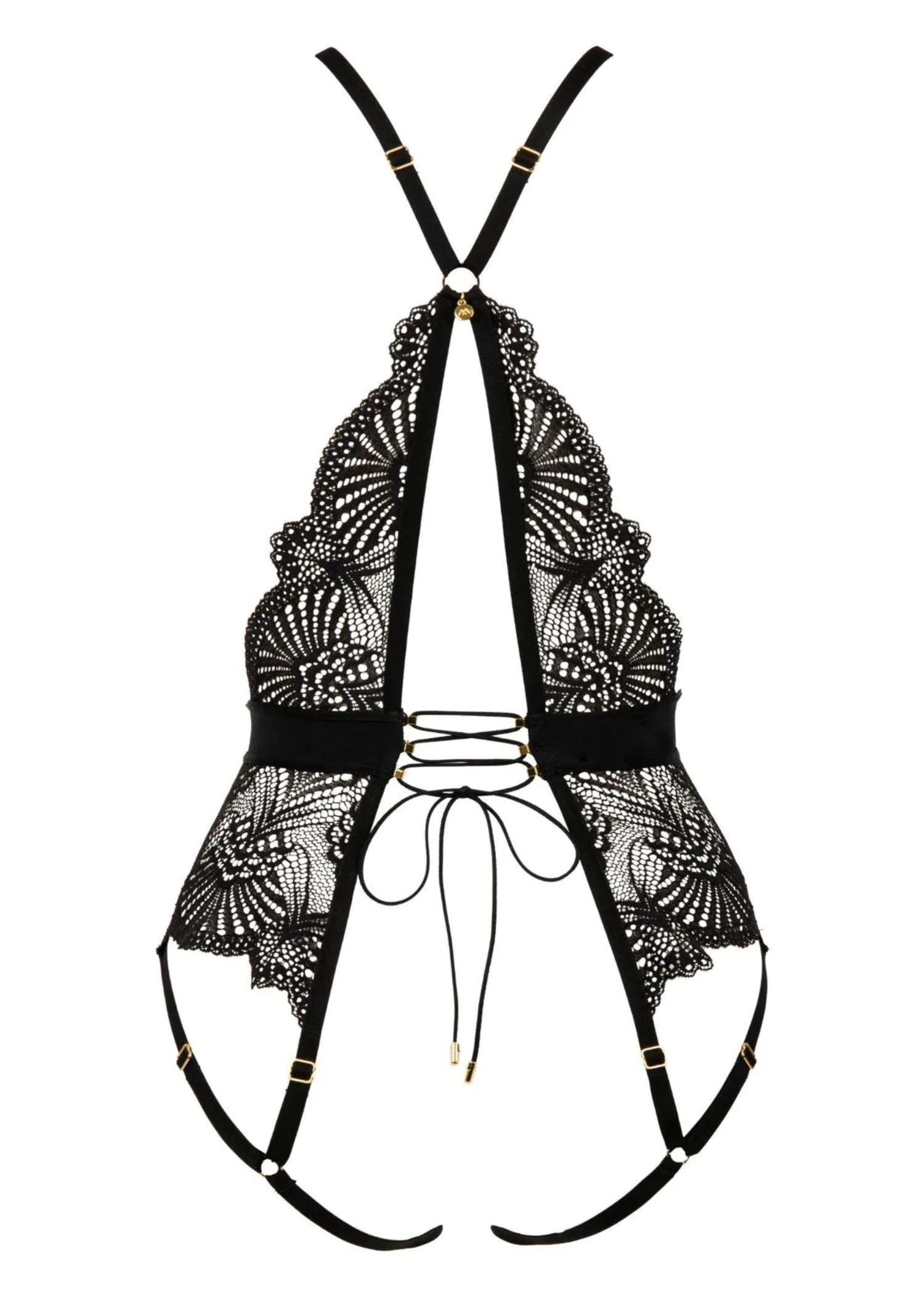 Embark on a journey of style and freedom with the Embrace Me Harness! Feel the luxury of the waist black mesh band and marvel at the glamorous jeweled lacing in the back, all held together with fully adjustable straps and gold tone adjustment hardware. Flaunt your style and individuality with every step you take!