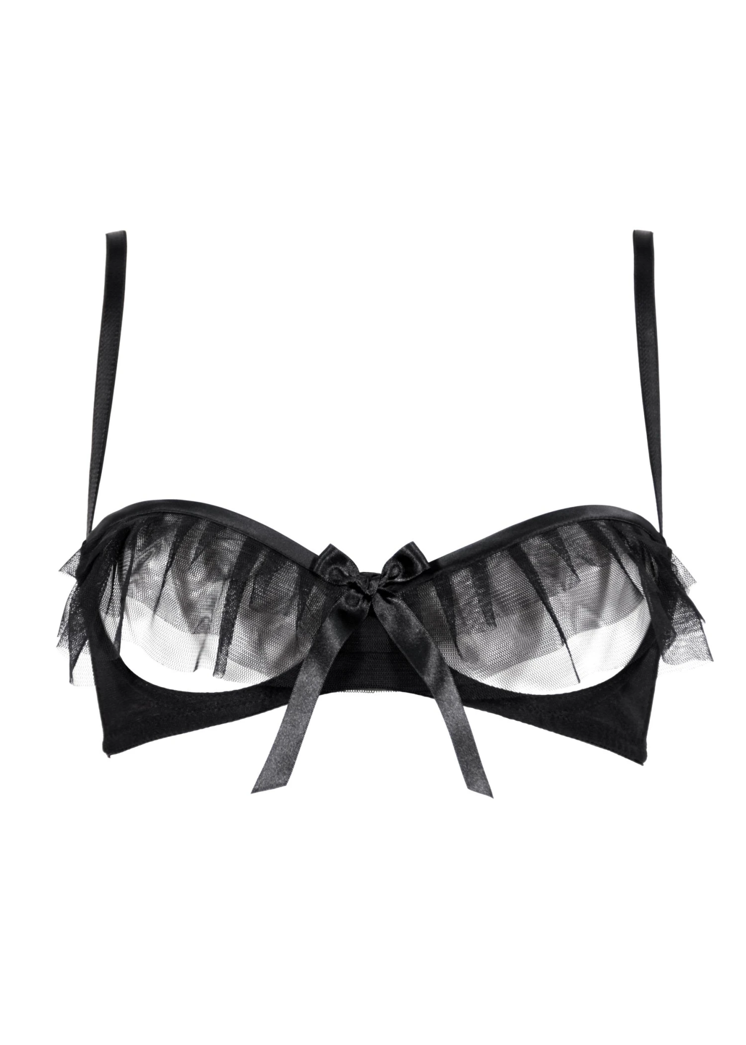 If you are the kind of girl that loves ruffles and ribbons, Lascivious Kitty Ivory Cupless Bra is the perfect bra for you. With gorgeous layers of Ivory tulle ruffles topped off with a satin bow, the Kitty Cupless Bra has the perfect mix of cute and flirty.