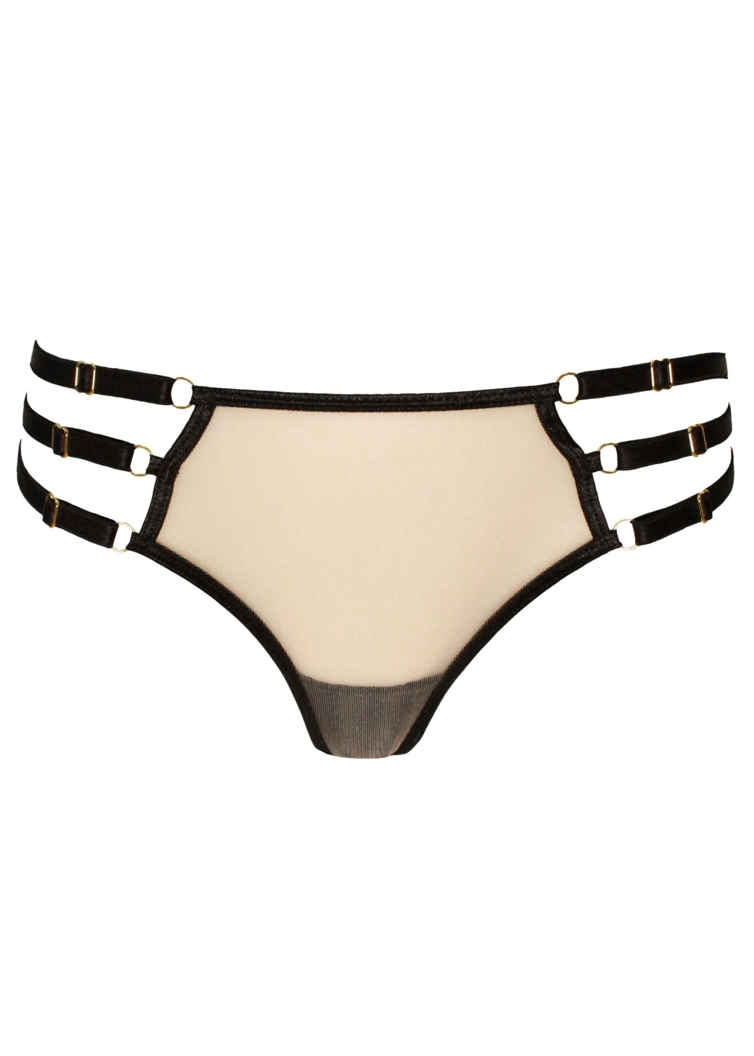 The Kylie thong uses see-through mesh and triple waist straps with gold hardware sliders to tease the eyes and ensure a perfect fit. Complete the look with the Kylie bra.