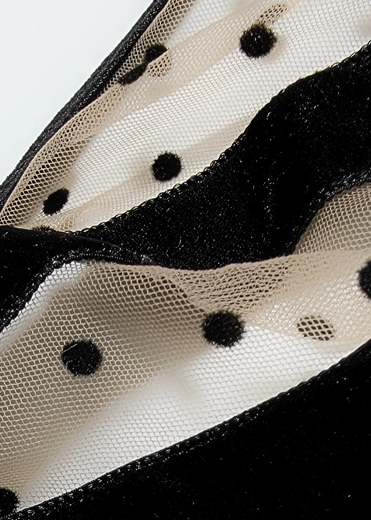 - Black velvet on nude mesh