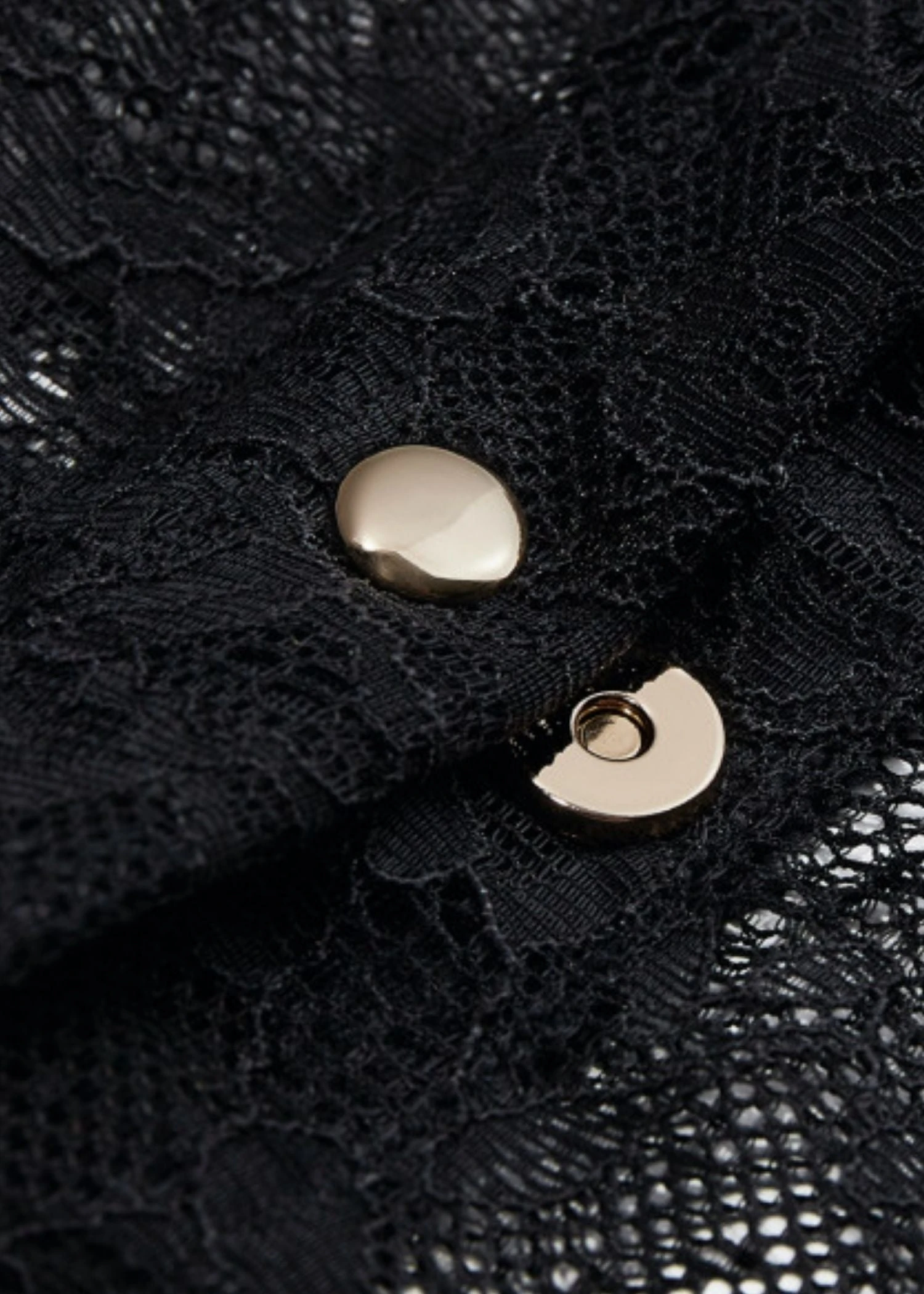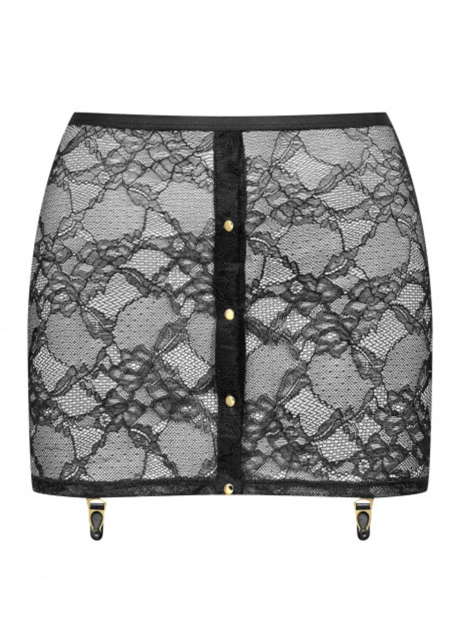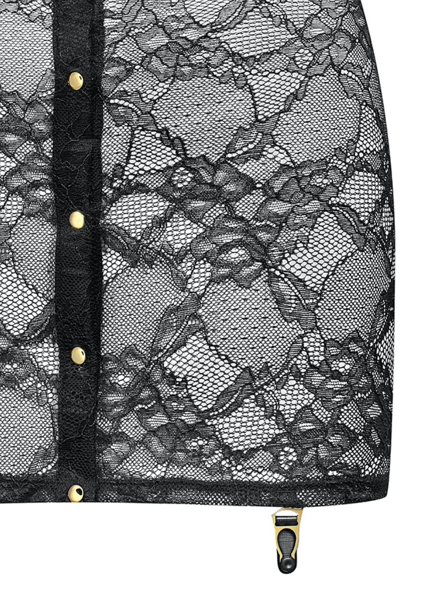 The Le Petit Secret Magnetic skirt is a chic and alluring piece to layer on top of lingerie or worn on its own. It features soft sheer lace with magnetic buttons for easy access and removable suspender belts.