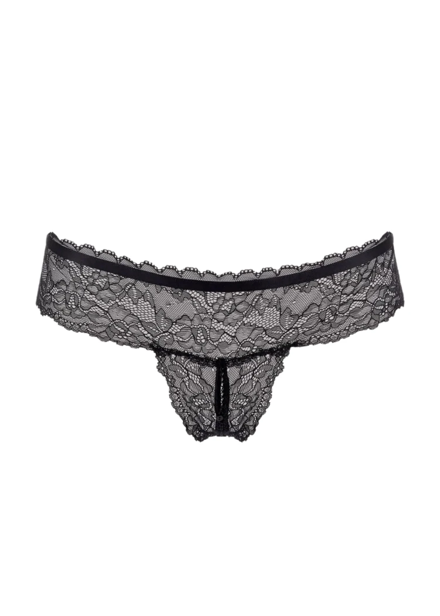 For a cheeky, sexy and playful look, this tanga thong is the perfect choice. Designed with a delicate lace that covers its intimate areas, yet leaves just enough to the imagination. It features an opening at the back that covers but exposes at the same time; provoking a sense of desire and seduction.