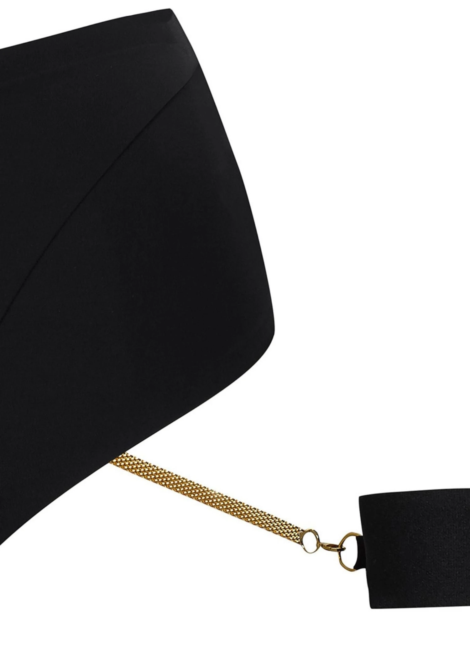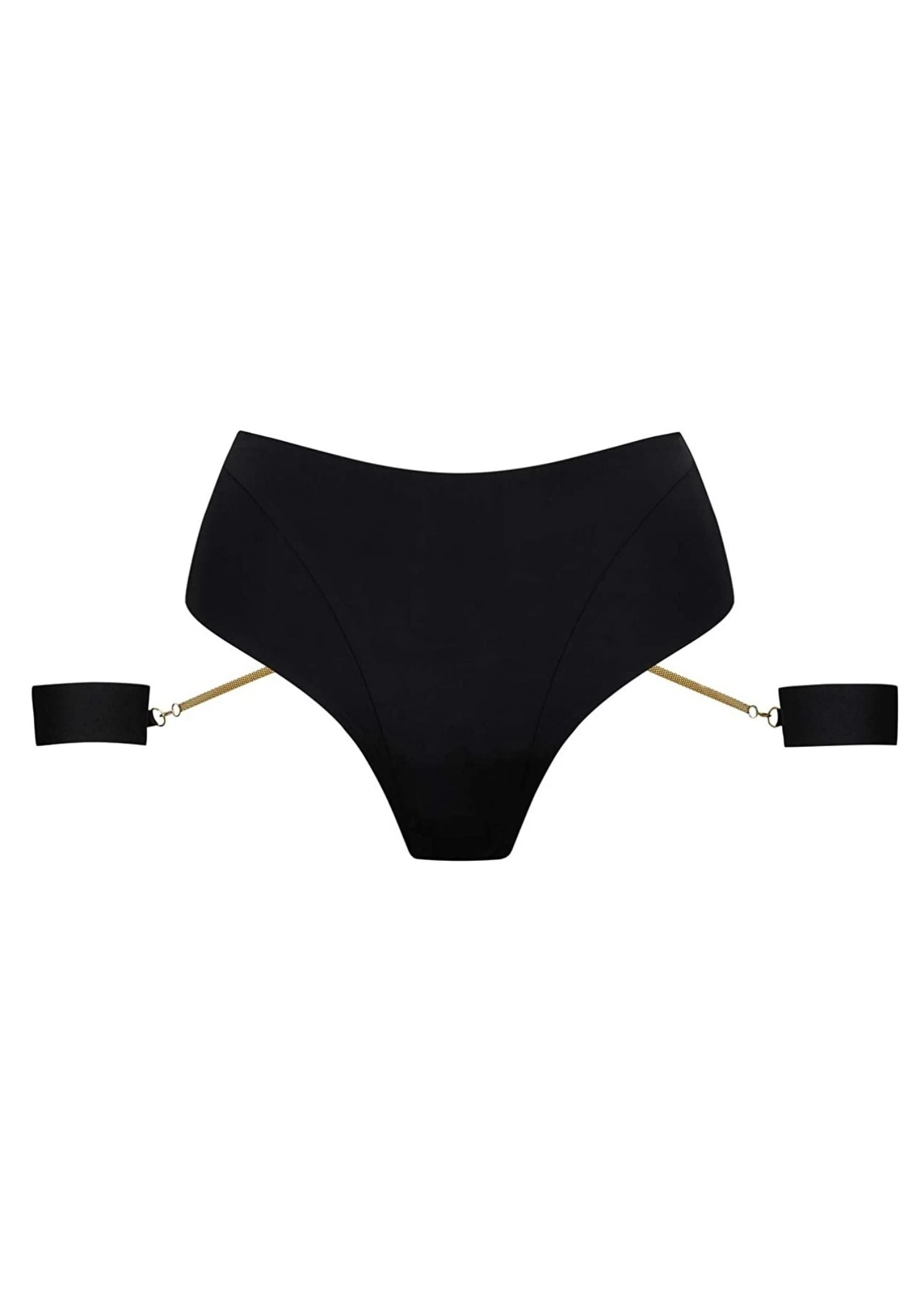 Made to seduce, the Tapage Nocturne Thong features a classic high-waist design in the front and an openable back with cuffs. Paired with gold-tone hardware for a touch of opulence.