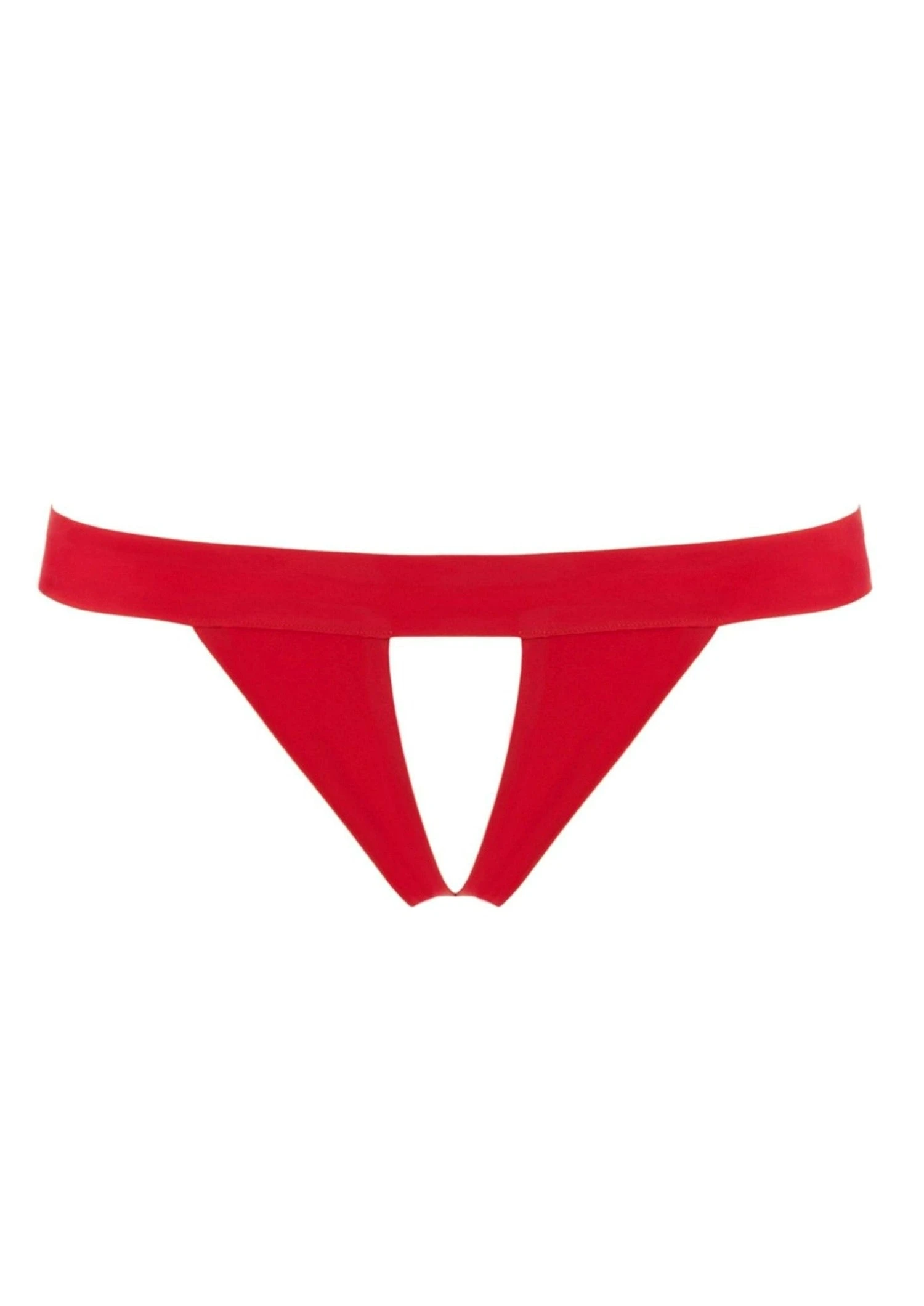 Feel irresistibly sexy in the Tapage Nocturne Open Thong, super soft microfibre form a chic crisscross design to create front and back cutouts. Pair it with the matching bra for the complete look.
