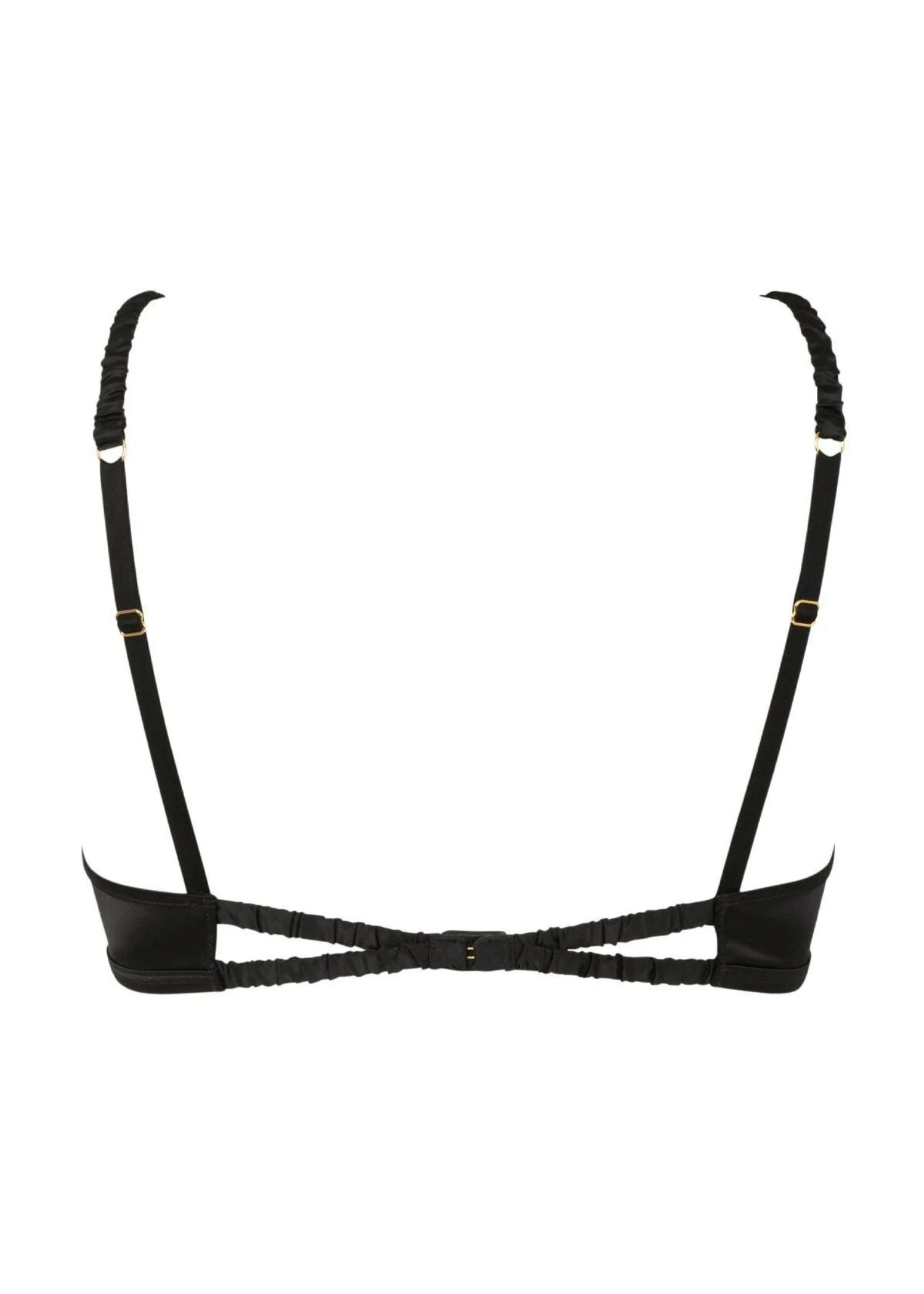 A creation for the refined, confident woman who knows her best assets and doesn’t mind showing them off. Designed with underwired support, with sheer tulle on both sides, and a pleated satin band all round, making this piece of art a must-have for your lingerie collection.