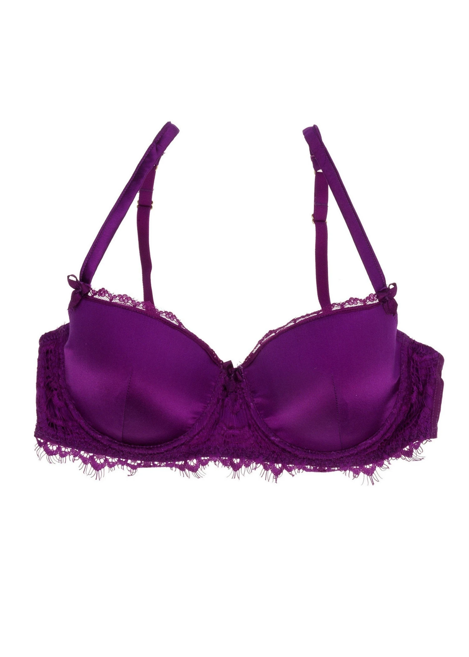 This gorgeous plum purple bra in silk and lace edging offers great support and uplift.