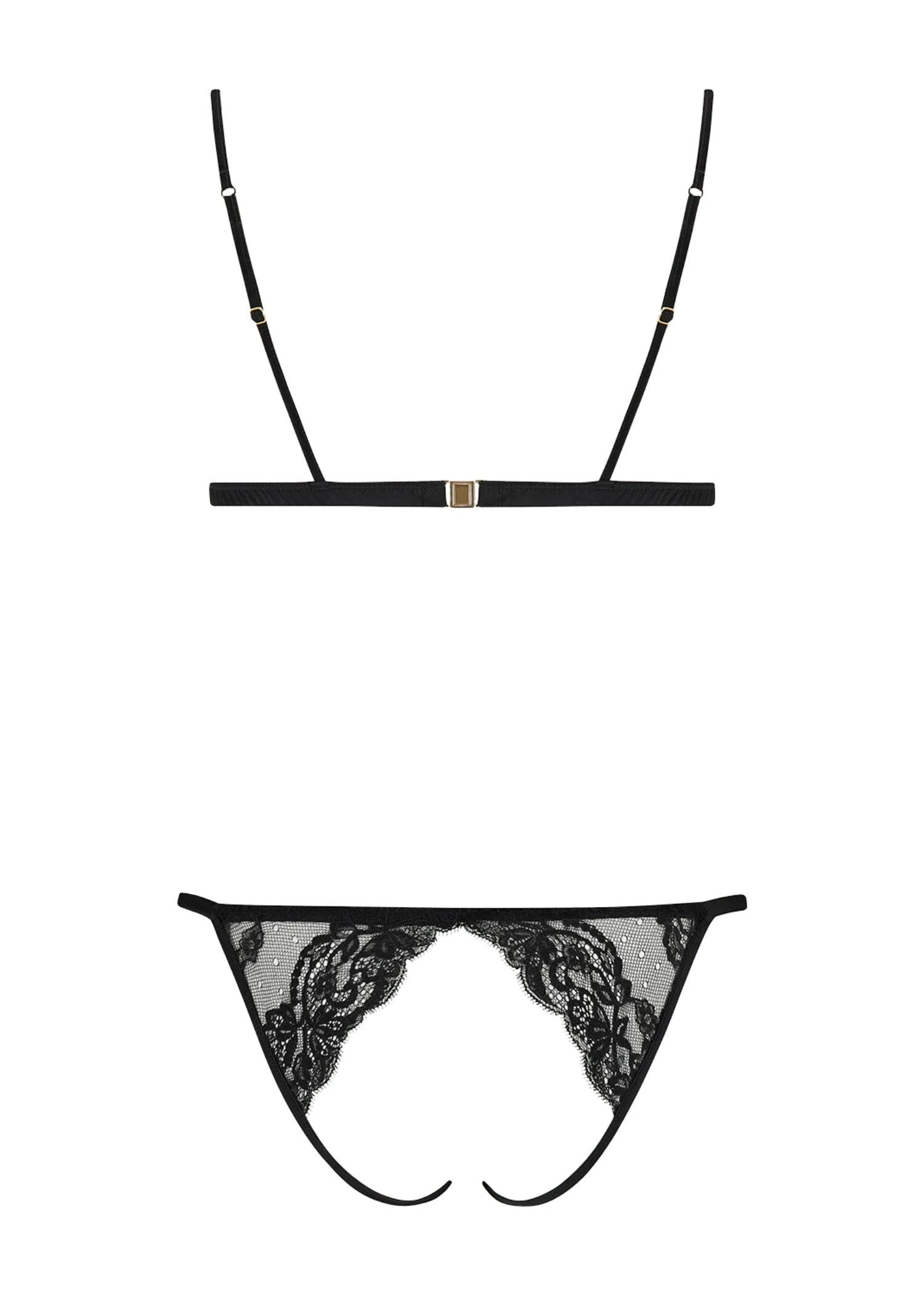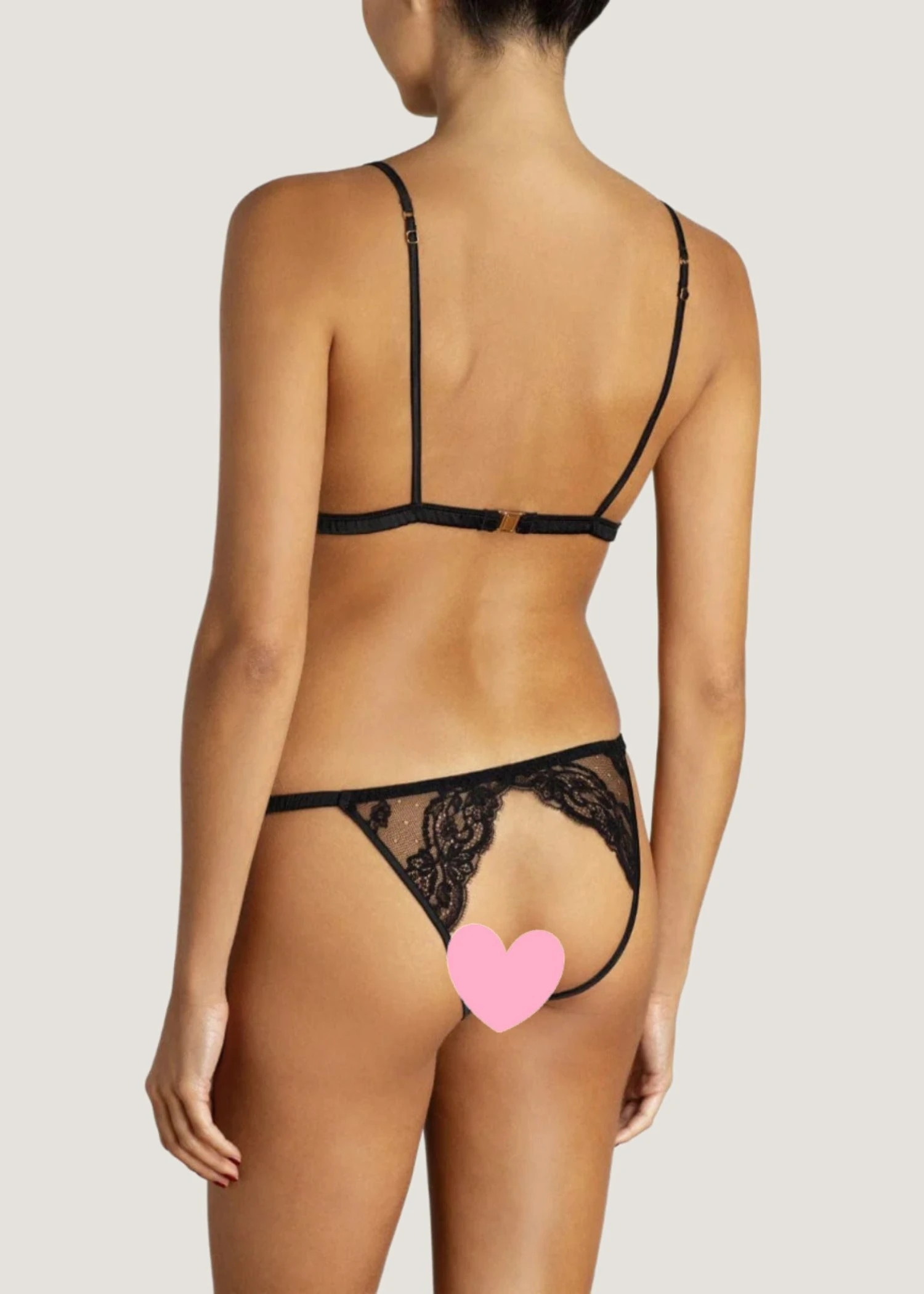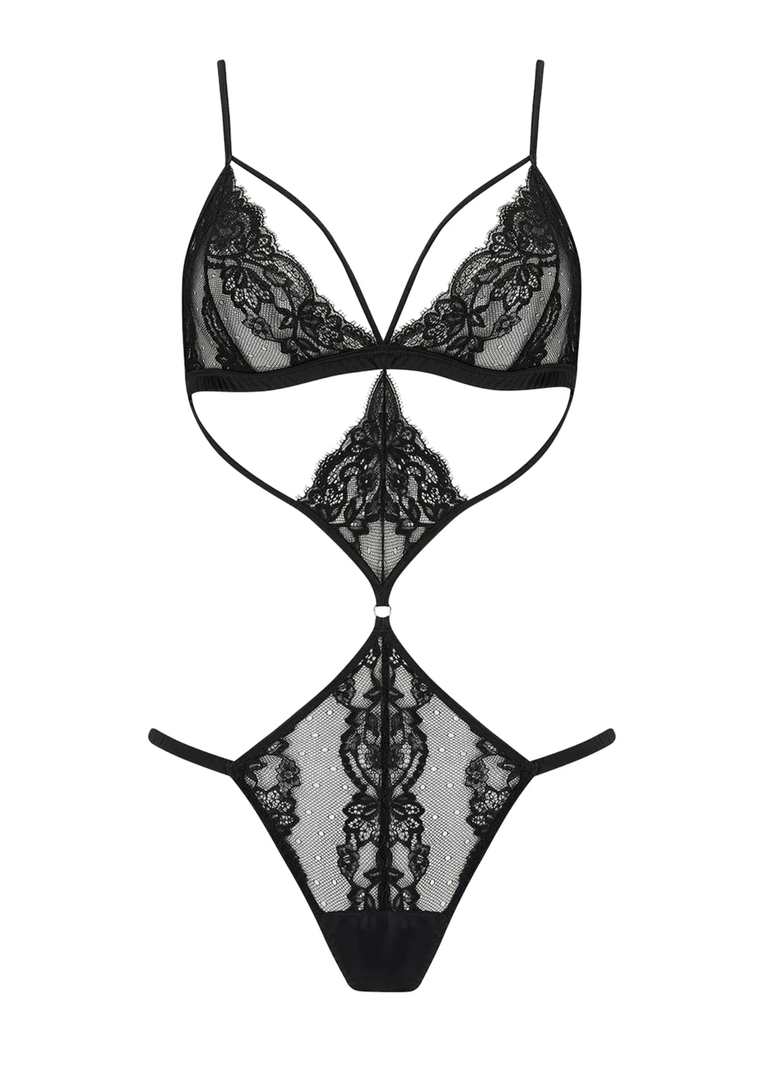 Transform yourself into a sultry temptress with the Seraphine Playsuit. Its intricate panels of jet black French Leaver’s lace flatter your figure, while the luxurious silk shoulder straps and triangle cup shape ensure a comfortable alluring fit. Let your body be teased and tantalized by its alluring design!
