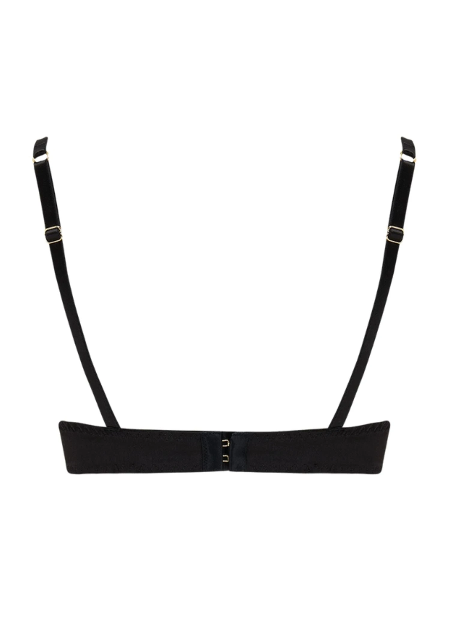 A timeless piece with a seductive twist. The Seraphine Plunge Bra is made with high quality black corded French Leaver’s lace and drop-cradle design underwire to enhance your curves.