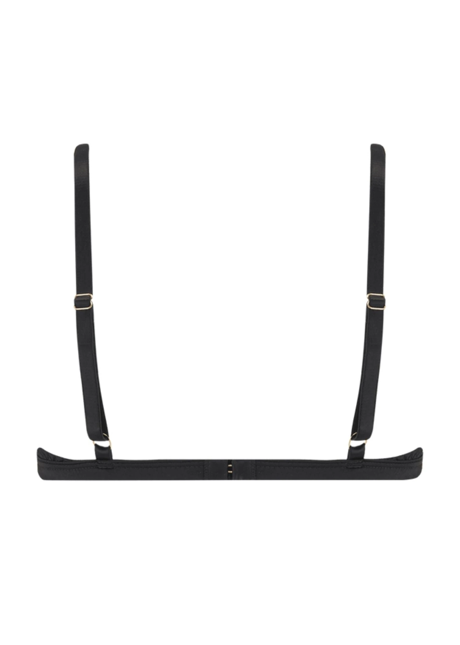 The Seraphine Soft Cup Bra draws the eyes with teasing cutouts and delicate textures of French Leaver’s lace and black silk. With slim silk straps placed on top of cups to enhance your silhouette.
